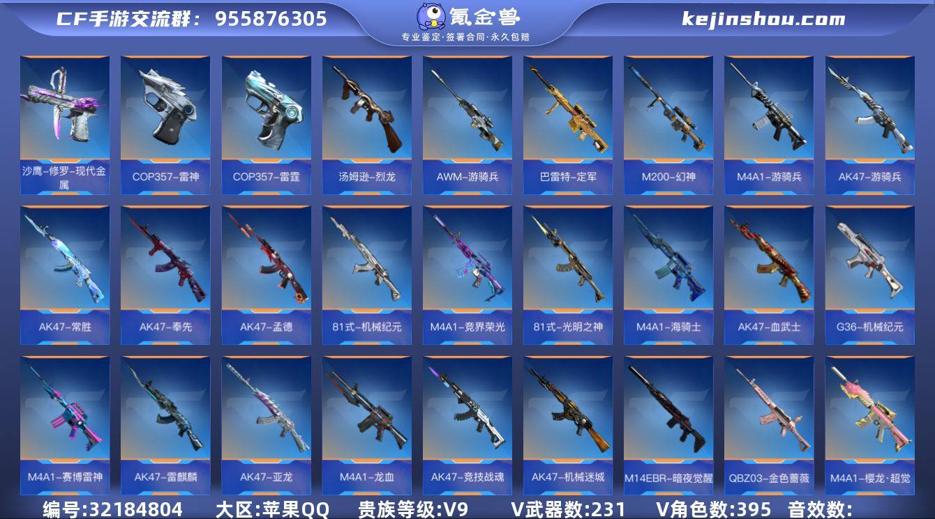 【FC-7QP01W】【4至尊2同框差一个王心雷多7至尊--2套翼雷--王者幻神-雷霆王者ak-3王峰-奉先套-孟德-游骑兵套-幻神套-常胜-黑龙魂-雅典娜-香香】手Q-苹果,等级166,VIP0,V武器数:392 ,V角色数:11 【人物角色】孙悟空,牛妹,海滩夜玫瑰,由乃,潜龙队,香香,樱,太阳神-曦,幽灵刀锋-觉醒,大老师,堕天使,孤狼,周年庆纪念赛斯,龙的传人-王力宏,复仇者,运动宝贝兰,葵,铁骑,洛伊,夏日灵狐,暗影,春节兰,夜玫瑰-2017,刀锋-2017,审判者,曼陀罗,幻影,幻影,夜玫瑰,兰,潘多拉,灵狐者,猎狐者,奥摩,斯沃特,龙妹,木兰,蜀雪,月神,雅典娜,灵动武士,赛丝,麻雀,职场灵狐-赛事经理,斯薇特, 【王者武器】王者之誉,王者之尊,王者之魄-冠军珍藏,AK47-雷霆王者,王者之心,王者之心,王者之心,王者之影,王者之影,王者之翼,王者之戮,王者之怒,王者之光,王者之魂,王者之魂,王者之灵,王者之轮,王者之锋,王者之锋,王者之锋,王者之啸,王者之啸,王者之击,王者幻神,王者之狱, 【带V枪械】龙啸,龙啸,龙啸,龙啸,巴雷特-毁灭,巴雷特-毁灭,尼泊尔-火麒麟,地狱烈炎,剑齿虎,剑齿虎,双截棍-金色蔷薇,双截棍-金色蔷薇,马来剑-毁灭,马来剑-毁灭,AK47-沙漠郡主-二觉,麒麟刺,麒麟刺,尼泊尔-竞界荣光,SCAR-幽暗骑士觉醒,屠龙,屠龙,屠龙,屠龙,屠龙,屠龙,屠龙,屠龙,屠龙,AK47-Rush-星速,M4A1-Rush-夜袭,M4A1-Rush-夜袭,M4A1-Rush-夜袭,AWM-天使,巴雷特-冬灭觉醒,G36-机械纪元,神罚战斧,神罚战斧,尼泊尔-机械纪元,M4A1-海骑士,墨刃-幻神,M4A1-赛博雷神,QBB95-极光,QBB95-极光,M4A1-竞界荣光,血月,血月,M4A1-龙血,M4A1-九尾狐,铁锹-游骑兵,铁锹-游骑兵,98K-星神,M4A1-樱龙·超觉,M4A1-竞技战魂,M4A1-卧龙觉醒,M4A1-君威GS,M4A1-君威GS...