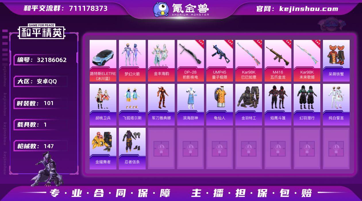 DSH2343【有二次 1载具-3粉装-5特效枪 梦幻火箭 红螳螂 M416-五爪金龙[7级]】安卓手Q-1载具-3粉装-5特效枪-101套装-147枪皮-7王牌印记-英勇黄金Ⅱ-43851热力值【1载具】路特斯ELETRE(冰川蓝)【3粉装】角色-2号机款机体服,金丰海韵,梦幻火箭【5特效枪】DP-28-豹影疾电[5级],UMP45-量子极限[5级],Kar98K-未来歌姬[3级],M416-五爪金龙[7级],Kar98K-巳巳如意[1级]【6稀有】忍者信条,S686-奇异狩猎者,M762-奇异狩猎者,AKM-奇异狩猎者,汤姆逊-奇异狩猎者,M24-奇异狩猎者【1飞行器】炫彩糖果飞行器【3头盔】幻影战神头盔,梦幻火箭头盔,甜蜜誓约头盔【1背包】幻影战神背包【234其它衣服和枪皮】海盐绵绵冰,焰鹰斗篷,SS36特训,快闪甜心,凌霄紫焰,SS17特训,萝兰蝴蝶,蓝色运动,金耀舞者,锦衣飞扬,光之冒险,SS19特训,滨海厨神,炫蓝之夏,SS23特训,缤纷果语,角色-真嗣款战斗服,探宝勇士,SS32特训,鹤鸣,惊鸿侠骨,牛气冲天,SS33特训,战地督导,幻羽潜行,角色-军刀雅典娜,SS26特训,SS25特训,SS22特训,萌趣咩咩,牛气满满,竞技名士,音速流光,骑行爱好者,妙红点点,SS18特训,田园牧歌,朱霞炽焰,雪国风尚,SS34特训,格斗先锋,热情海星,幻彩翩翩,特训学院,虎虎生威吉莉,黑色伏地魔,贵族骑装,角色-明日香款战斗服,呆萌铁蟹,幻世战舞者,娇憨猪猪,SS24特训,魅力单车,柠萌假日,龙腾端午,战术大师,SS27特训,金羽特工,福星高照,空投萌叽,角色-乐音,纯真浪花,野性战心,薄荷星砂,飞狐塔尔斯,湖蓝色名流,王牌教练,春光漫游,麻辣教官,轻风白浪,灵幻魔术师,SS28特训,白色伏地魔,SS29特训,蓝彩潮人,飞驰魅影,纯白誓言,蝶变,热血青春,胡桃卫兵,明鸳圣池,午间小调,角色-冰公主,铁血战翼,海岛探路者,SS35特训,冰川特警,龟仙人,玉兔迎春,SS31特训,蓝调潮人,SS20特训,龙魂突击队,SS21特训,风迹短诗,长空猛禽,萌鸡