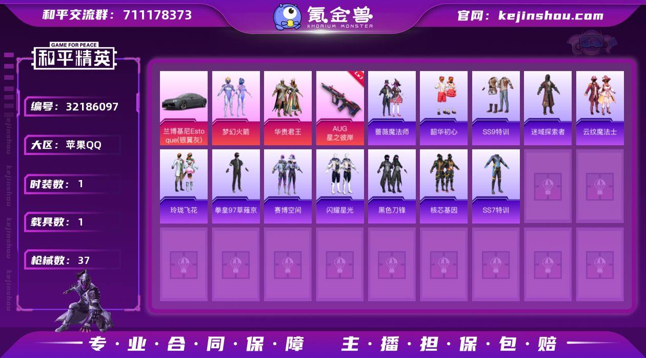 DSH2341【1粉 4特 1车 星之彼岸2级 梦幻火箭无二次】苹果手Q-1载具-1粉装-4特效枪-19套装-37枪皮-1王牌印记-卓越王牌7星-11706热力值【1载具】兰博基尼Estoque(银翼灰)【1粉装】梦幻火箭【4特效枪】AKS-74U-森灵之息[5级],UMP45-萌骑冒险[2级],Mk14-福马献瑞[5级],AUG-星之彼岸[2级]【2飞行器】马上有福飞行器,云朵驼驼飞行器【1头盔】梦幻火箭头盔【1背包】梦幻火箭背包【51其它衣服和枪皮】雨过天青,福马献瑞,红釉青花,角色-唐三,SS37特训,夏日倾情,街头潮人,青翼流星,龙的传人,魅力单车,快乐星愿,马上有钱,狙击之神,书海巡游,白糯汤圆,星梦畅游,琴音绮想,画境星梦,M16A4-雨过天青,P90-紫矿核心,M249-拉面少女,AUG-耀粉歌者,P90-精灵之光,蜜獾-启元战纹,AMR-雨过天青,SCAR-L-夜灯,ACE32-画境星梦,ACE32-冰晶雪宝,AUG-甜蜜菠萝,S686-拉面少女,GROZA-拉面少女,M1加兰德-千仞雪,AKM-星之彼岸,M249-星之彼岸,M416-糯团青竹,AA12-G-雨过天青,Kar98K-梦幻火箭,VSS-星之彼岸,MP5K-画境星梦,MG-36-薄荷星砂,沙漠之鹰-雨过天青,GROZA-福马献瑞,燃烧瓶-福马献瑞,M1加兰德-画境星梦,AA12-G-画境星梦,PKM-雨过天青,平底锅-画境星梦,UZI-炫彩节奏,S12K-夜灯,12-乌木金纹,SLR-乌木金纹