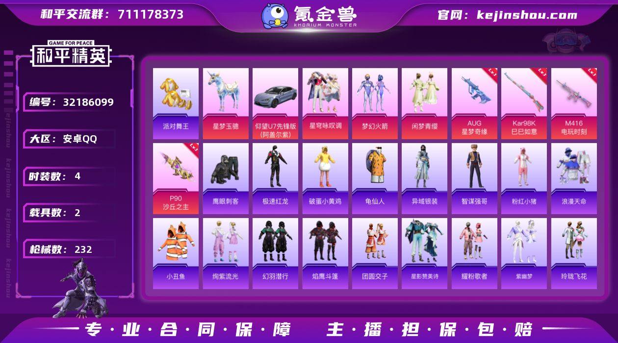 DSH2342【2载具-4粉装-10特效枪 星梦玉骢 AUG-星梦奇缘[3级] 带王者V8 127英雄 209皮肤 1典藏 2无双 1珍品 21传说 1星传说 幽冥之眼 】安卓手Q-2载具-4粉装-10特效枪-180套装-232枪皮-8王牌印记-超级王牌-66480热力值【2载具】仰望U7(阿盖尔紫),星梦玉骢【4粉装】闲梦青缨,角色-异瞳寒姬,星穹咏叹调,梦幻火箭【10特效枪】AKS-74U-森灵之息[5级],Mk14-福马献瑞[5级],Mk14-甜梦熊击[5级],M416-天马神君[2级],P90-沙丘之主[1级],UMP45-萌骑冒险[2级],M416-电玩时刻[5级],AUG-星梦奇缘[3级],Kar98K-巳巳如意[5级],DP-28-豹影疾电[5级]【5稀有】小丑鱼,忍者信条,浪漫天命,暗影哥特,派对舞王【11飞行器】狂鲨锋刃飞行器,马上有福飞行器,空岛之星尾迹,粉色滑翔尾迹,暮色之舞飞行器,破刃行动尾迹,踏卷乘风飞行器,鸡智如我飞行器,异域银装飞行器,顶峰精英尾迹,登顶巅峰飞行器【1头盔】梦幻火箭头盔【1背包】梦幻火箭背包【393其它衣服和枪皮】青春校园,荣耀,清新柠檬,深蓝色名流,角色-冰公主,漫游都市,空岛之星,猛禽,都市魅力,玲珑侠影,SS35特训,蓝色运动,战术大师,快乐星愿,SS31特训,书海巡游,纯真浪花,角色-极地流光,甜蜜告白,光之冒险,角色-玄霖雨神,燃烧卡路里,漫步者,海岛探路者,耀粉歌者,白色伏地魔,萌鸡速递,幻羽潜行,狂鲨锋刃,SS21特训,特训学院,街头风暴,暗黑骑手,异域银装,角色-白光莹,沙漠毒蛇,惊鸿侠骨,灵蜜圈圈,香榭午后,SS23特训,龙的传人,雪国风尚,特战装甲,六六大吉,青涩时光,团圆交子,SS29特训,SS25特训,蓝冰羽,涂山之恋,角色-鲛海歌灵,缤纷果语,狙击之神,妙红点点,游乐,燕燕于飞,曼妙人鱼,冰冻风暴,薄荷星砂,SS27特训,SS24特训,冷焰舞者,雨过天青,锦衣飞扬,角色-粉雾星云,玉兔迎春,香桃花海,角色-唐三,湖蓝色名流,鱼渊荷华,擎苍青焰,霓虹街区,角色-绯色魅影,画境星梦,