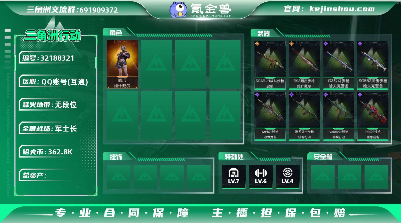 【SJZQH1063】总资产(M):409M/哈夫币(K):362805K/哈夫币(K):362805K/传说枪皮数:20/全面战场等级:31_段位:军士长/烽火地带等级:60_段位:铂金/骇爪-维什戴尔/红狼-电锯惊魂/近战-处刑者1级/黑鹰/SG552突击步枪-点翠/SCAR-H战斗步枪-启航/腾龙突击步枪-马年祥瑞/腾龙突击步枪-万金泪冠/KC17突击步枪-电锯惊魂/KC17突击步枪-点翠/Vector冲锋枪-能天使-午夜邮差/Vector冲锋枪-夜莺/勇士冲锋枪-能天使-午夜邮差/勇士冲锋枪-万金泪冠/4冲锋枪-夜莺/Mini-14射手步枪-夜莺/M14射手步枪-缄花/SKS射手步枪-骑士/SR-25射手步枪-缄花/PSG-1射手步枪-点翠/R93狙击步枪-维什戴尔/AWM狙击步枪-万金泪冠/.357左轮-缄花/G18-马年祥瑞/K416突击步枪-冬日风情/SG552突击步枪-哈夫克警备/G3战斗步枪-哈夫克警备/腾龙突击步枪-猎鳄行动/MP5冲锋枪-战术竞备/MP5冲锋枪-竞技风/P90冲锋枪-紧急戒备/Vector冲锋枪-猎鳄行动/SMG-45冲锋枪-阿萨拉特攻/MP7冲锋枪-六套之力/QJB201轻机枪-炽焰/M14射手步枪-工业狂潮/SV-98狙击步枪-猎鳄行动/MP7冲锋枪-黑潮/M4A1突击步枪-零点/AKM突击步枪-肃杀/QBZ95-1突击步枪-公平竞技/K416突击步枪-碳纤维/K416突击步枪-一帆风顺/M7战斗步枪-捣蛋鬼/SG552突击步枪-2026/SG552突击步枪-贴花艺术/AK-12突击步枪-零点/ AK-12突击步枪-马年新春/SCAR-H战斗步枪-荣耀列队/SCAR-H战斗步枪-开心时刻/CAR-15突击步枪-亚特兰蒂斯/腾龙突击步枪-冰天雪地/MP5冲锋枪-哈夫克卫队/P90冲锋枪-黄昏/P90冲锋枪-捣蛋鬼/P90冲锋枪-贴花艺术/Vector冲锋枪-先锋/UZI冲锋枪-精英联盟/UZI冲锋枪-亚特兰蒂斯/野牛冲锋枪-精英联盟/SMG-45冲锋枪-行动开启/勇士冲锋枪-精英联盟/QCQ171冲锋枪-银鹭/