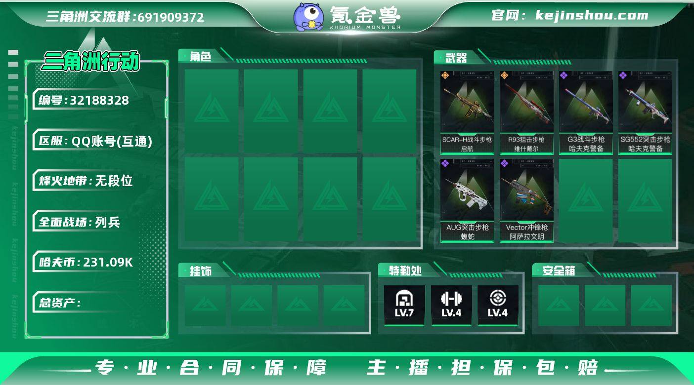 【SJZG4121】总资产(M):431M/哈夫币(K):231090K/哈夫币(K):231090K/传说枪皮数:6/全面战场等级:30_段位:列兵/烽火地带等级:60_段位:青铜/近战-处刑者1级/黑鹰/AKM突击步枪-锦绣/SCAR-H战斗步枪-启航/K437突击步枪-锦绣/SMG-45冲锋枪-锦绣/SKS射手步枪-骑士/R93狙击步枪-维什戴尔/K416突击步枪-冬日风情/AUG突击步枪-蝮蛇/SG552突击步枪深海恐惧/SG552突击步枪-哈夫克警备/G3战斗步枪-哈夫克警备/MP5冲锋枪深海恐惧/Vector冲锋枪-阿萨拉文明/MP7冲锋枪-六套之力/M14射手步枪-工业狂潮/K416突击步枪-一帆风顺/ AK-12突击步枪-马年新春/SCAR-H战斗步枪-荣耀列队/K437突击步枪-生存指令/47突击步枪-精英联盟/MP5冲锋枪-弄臣/MP5冲锋枪-哈夫克卫队/Vector冲锋枪-先锋/UZI冲锋枪-精英联盟/UZI冲锋枪-亚特兰蒂斯/野牛冲锋枪-精英联盟/SMG-45冲锋枪-行动开启/SMG-45冲锋枪-幻影结构/勇士冲锋枪-冰天雪地/QCQ171冲锋枪-银鹭/M1014霰弹枪-幻影结构/M249轻机枪-冰天雪地/QJB201轻机枪-哈夫克卫队/SKS射手步枪-弄臣/SR-25射手步枪-开拓/SV-98狙击步枪-星链科技/SV-98狙击步枪-哈夫克航天/SV-98狙击步枪-精英联盟/QSZ92G-一帆风顺/G17-古铜/M4A1突击步枪-粉色涂装/M4A1突击步枪-高雅黑/M4A1突击步枪-海色/QBZ95-1突击步枪-高雅黑/QBZ95-1突击步枪-海色/QBZ95-1突击步枪-2026/K416突击步枪-高雅黑/M16A4突击步枪-高雅黑/AUG突击步枪-浅蓝涂装/M7战斗步枪-黑巧甜心/SG552突击步枪-狂欢/SCAR-H战斗步枪-数码迷彩/G3战斗步枪-高雅黑/PTR-32突击步枪-黄蜂/CAR-15突击步枪-狂欢/AS Val突击步枪-黑巧甜心/MP5冲锋枪-海色/P90冲锋枪-黑巧甜心/Vector冲锋枪-几何迷彩/UZ