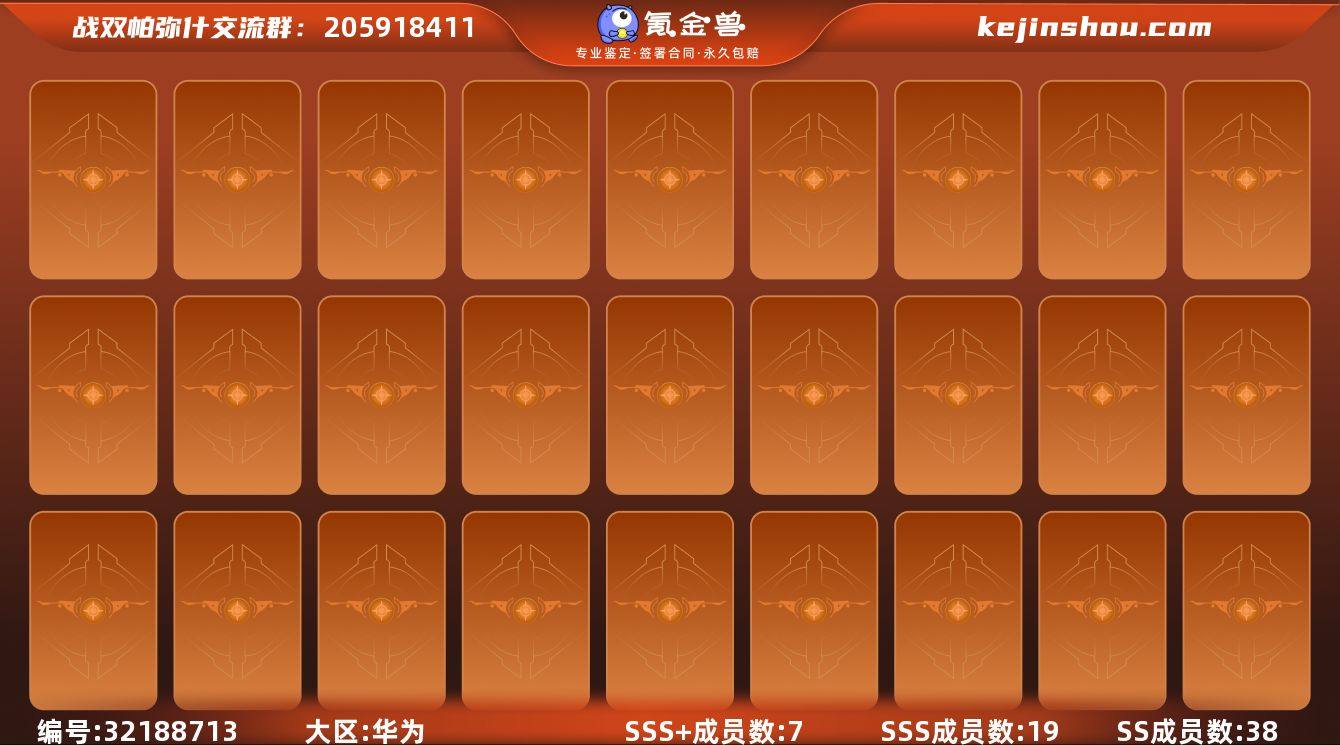 SSS+成员数量:7 SSS成员数量:19 SS成员数量:38 卖家说:人均2s3,新黑卡皮已肝,罗塞塔差一片2s3,可小刀
