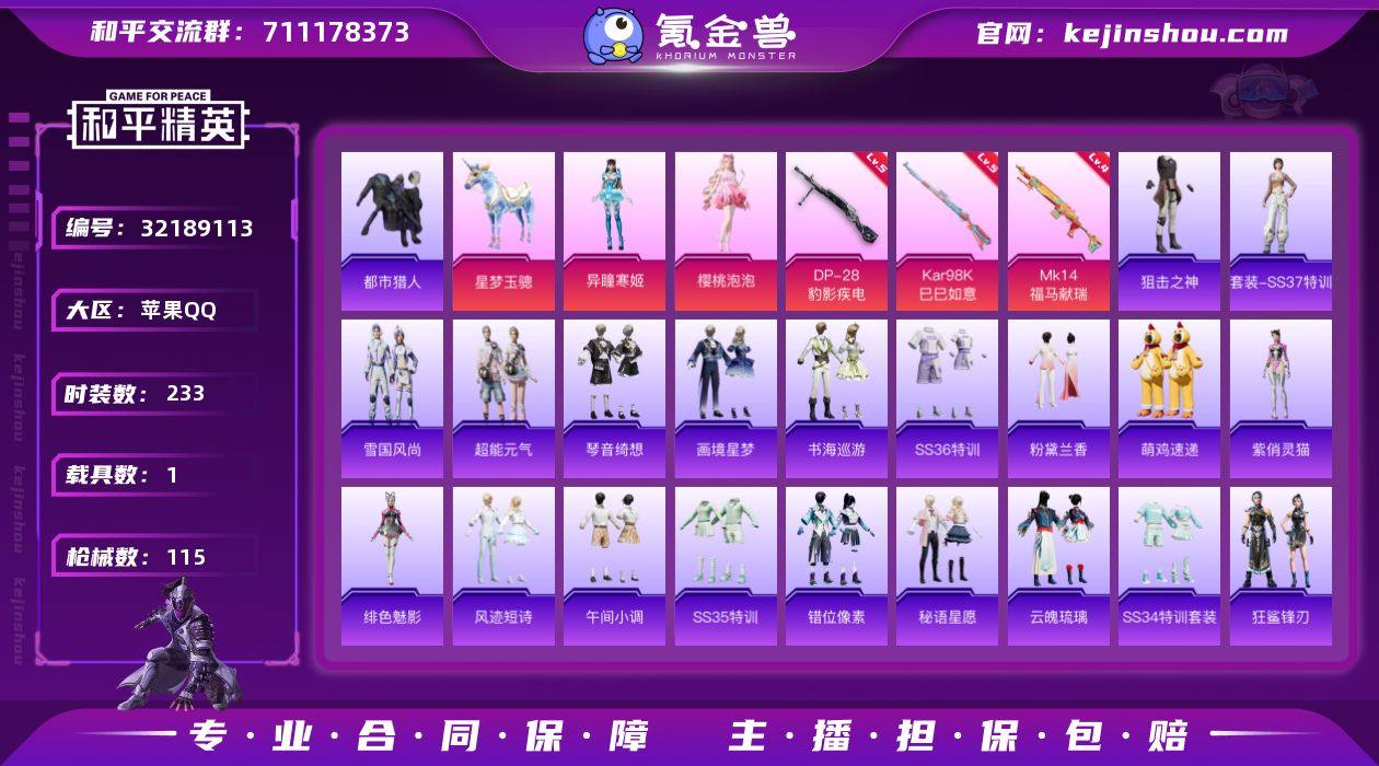 H12851苹果Q区-2粉装-3特效枪-28858热力值-7王牌印记-63套装-115枪皮【优质套装】: 异瞳寒姬 樱桃泡泡【优质载具皮肤】 星梦玉骢【特效枪等级】:Kar98K-巳巳如意(五级- Kar98K-巳巳如意)【优质武器皮肤】: Kar98K-巳巳如意【稀有武器皮肤】: 汤姆逊-星梦奇缘 Kar98K-巳巳如意 Mk14-冰河战士 M16A4-冰河战士 蜜獾-乌木金纹 TMP-9-萌萌史莱姆 PKM-啾咪啾咪 M416-红色方程式 M416-蓝色火焰 AKM-破晓战魂 SCAR-L-红色方程式 SCAR-L-夜灯 SCAR-L-炫彩节奏 M16A4-红色方程式 M16A4-蓝色火焰 GROZA-影袭 AUG-耀粉歌者 M762-彩虹符号 M762-天降萌叽 蜜獾-天降萌叽 Kar98K-红色方程式 Kar98K-洛神天依 AWM-天降萌叽 SKS-炫彩节奏 Mini14-梦幻火箭 Mini14-耀粉歌者 Mini14-穿刺龙虾 UZI-红色方程式 UMP45-蓝色火焰 UMP45-夜灯 汤姆逊-耀粉歌者