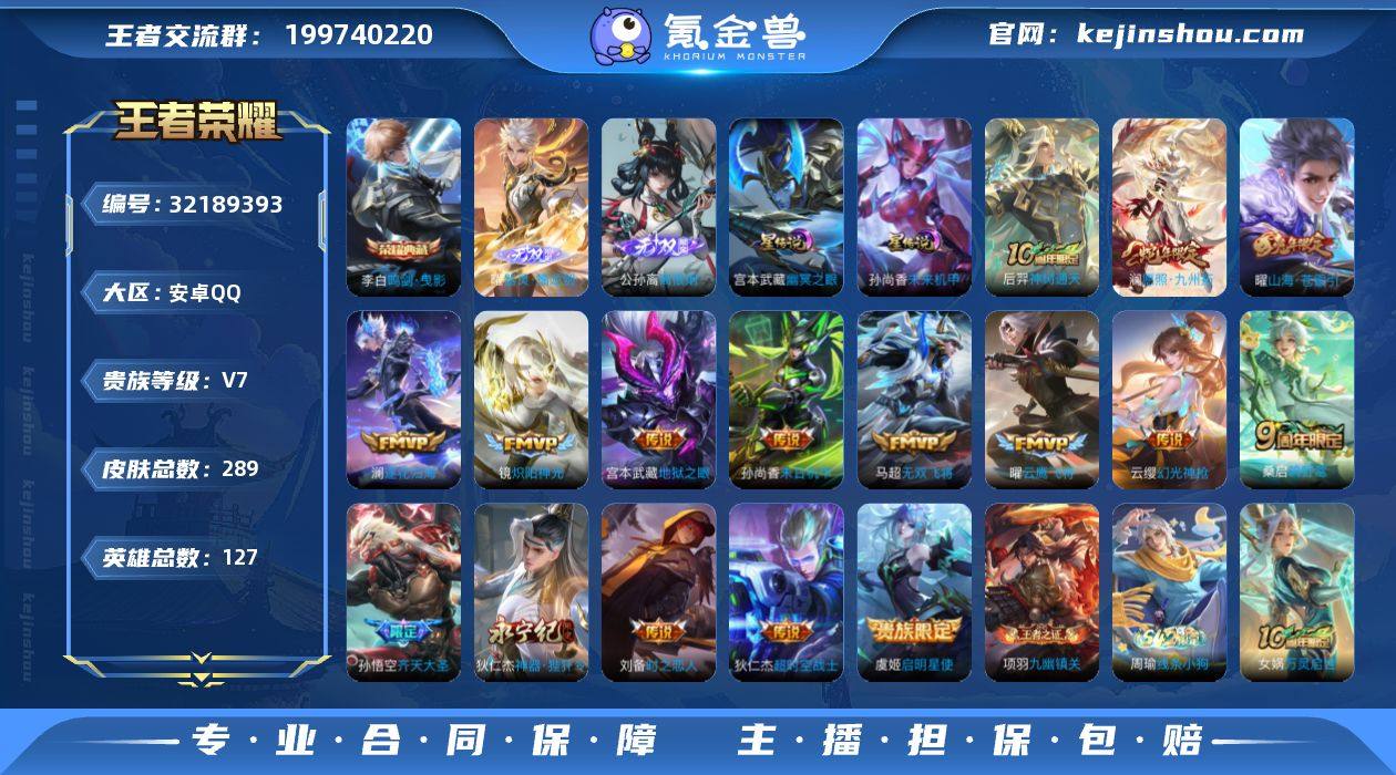 安卓Q-V7-最强王者段位-127英雄-289皮肤-1典藏皮肤-2无双-16传说-79史诗【英雄全皮】:孙权全皮,敖隐全皮,戈娅全皮【荣耀典藏】:李白鸣剑曳影【无双皮肤】:曜器灵螭龙剑,公孙离离恨烟【传说皮肤】:后羿神树通天,澜愿照九州拓,云缨幻光神枪,桑启鸣野蒿,澜逐花归海,孙悟空齐天大圣,曜山海苍雷引,狄仁杰神器狴犴令,马超无双飞将,镜炽阳神光,虞姬启明星使,曜云鹰飞将,刘备时之恋人,孙尚香末日机甲,宫本武藏地狱之眼,狄仁杰超时空战士【限定皮肤】:公孙离离恨烟,蒙犽顽岩魄,姜子牙天穹之誓,狄仁杰阴阳师,赵云皇家上将,墨子神迹守卫,庄周高山流水,高渐离死亡摇滚,高渐离玩趣恶龙,扁鹊奇幻香踪,芈月幻夜卜梦,元歌云间偶戏,元歌无心,马可波罗暗影游猎,马可波罗山海玄木吟,狄仁杰魔术师,狄仁杰万华元夜,狄仁杰神器狴犴令,达摩沙漠行僧,项羽海滩派对,老夫子醍醐杖,老夫子航海奇遇记,程咬金演武夺筹,韩信傲雪梅枪,兰陵王金庭之子,亚瑟潮玩骑士王,孙悟空齐天大圣,后羿圣弓游侠,李元芳匿光侦查者,李元芳云中旅人,虞姬启明星使,钟馗驱傩正仪,杨戬潮玩骑兵,干将莫邪真爱魔法,雅典娜单词大作战,雅典娜黎明之约,蔡文姬繁星吟游,太乙真人华丽摇滚,鬼谷子原初探秘者,鬼谷子五谷丰年,黄忠火炮绅士,苏烈千军破阵,百里玄策原初追逐者,弈星混沌棋,梦奇顽趣,公孙离玉兔公主,沈梦溪大漠名商,明世隐疑决卦,裴擒虎李小龙,裴擒虎擒涛扼浪,云中君纤云弄巧,猪八戒西部大镖客,上官婉儿梁祝,嫦娥拒霜思,嫦娥暖冬兔眠,曜山海苍雷引,西施玲珑珍味,蒙犽狂想玩偶喵,鲁班大师探海日志,桑启海盐诗旅,暃星界游侠,戈娅驭风魔法,艾琳女武神,阿古朵江河有灵,张良古海寻踪,蒙犽百解令,蒙恬荣光圣徽,鬼谷子天穹祈灯,姬小满妄想食味,沈梦溪龙舞盛年,鲁班七号蔬乡...