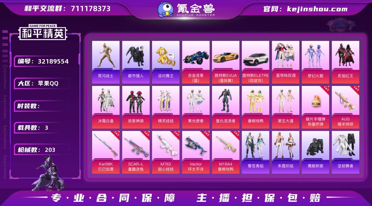 市 金鞋 新101 放客 粉熊包 满地铁天赋】c25024-【无二次】【因赛季更新游戏段付以上号为准!】 苹果Q-5稀有4载具10粉装9特效枪10热门152套装203枪皮 14印记 历史无敌战神 【5稀有】 木乃伊 都市猎人 浪漫天命 派对舞王 派对舞王(金靴子) 【4载具】 路特斯EL灰色 路特斯EV黄色 合金龙骨蓝色 萌兔起飞僚机 【11粉装】 梦幻火箭 星穹咏叹调 精灵娃娃 垂柳戏鸭 放客神游 第五大道 冰霜白皇 炙焰红王 寒光使者 复仇流浪者 霁蓝缠春 【9特效枪】 AKS-74U-森灵之息 (5级) Kar98K-巳巳如意 (5级) DP-28-豹影疾电 (5级) AUG-暖羊咩咩 (5级) M762-甜心娃娃 (7级) SCAR-L-童趣迷兔 (7级) M16A4-垂柳戏鸭 (7级) Vector-环太平洋 (7级) 破片手榴弹-热量炸弹 (5级) 【10热门】 鹰眼刺客 LGD战队服 粉红小猪 漫步者 破蛋小黄鸡 极速红龙 军刀雅典娜 弄潮海豚 M762-奇异狩猎者 M24-奇异狩猎者 【1飞行器】 圣光天使飞行器 【3头盔】 童趣迷兔头盔 梦幻火箭头盔 深海小丑鱼头盔 【1背包】 萌熊伴侣背包