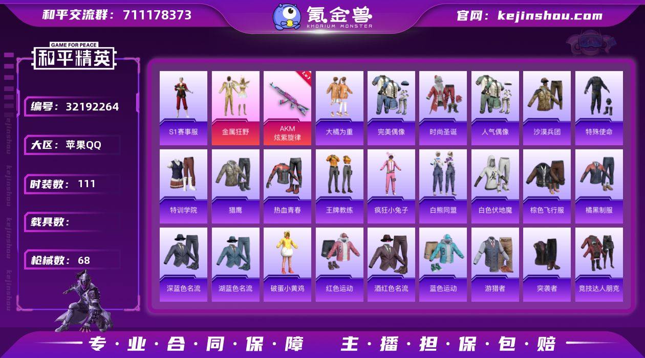 HM6544一体号-苹果Q区身法号-S1赛事全套 1粉2特效1飞行器【3太阳 地铁已开 法斗尖角面罩 AKM-炫紫旋律6级 金属狂野 大橘为重 送王者189皮9传说至尊宝 白虎志 神威】-19280热力值-2王牌印记-55套装-68枪皮-黄金I-游戏64级 无二次协助 【优质套装】: 金属狂野 【特效枪等级】:AKM-炫紫旋律(六级- AKM-炫紫旋律) 【优质武器皮肤】: AKM-炫紫旋律 【稀有武器皮肤】: AKM-炫紫旋律 M416-红色方程式 M416-夜灯 AKM-PEL轰鸣竞梦者 AKM-乌木金纹 AKM-灼热熔岩 SCAR-L-乌木金纹 AUG-耀粉歌者 QBZ-神秘黑猫 QBZ-乌木金纹 G36C-不夜海上花 Kar98K-红色方程式 Kar98K-幻影战神 Kar98K-彩虹符号 M24-众神之王 AWM-乌木金纹 AWM-不夜海上花 SKS-乌木金纹 Mini14-生命誓言 Mini14-金鼠迎春 SLR-众神之王 QBU-不夜海上花 UZI-生命誓言 UZI-众神之王 UMP45-夜灯 Vector-彩虹符号 汤姆逊-耀粉歌者 汤姆逊-天降萌叽 汤姆逊-乌木金纹 MP5K-众神之王 S686-不夜海上花 S1897-神秘黑猫 S12K-幻世战舞者 S12K-幻影战神 S12K-夜灯 M249-乌木金纹 DP-28-乌木金纹 MG3-幻世战舞者 平底锅-众神之王 平底锅-炫紫旋律 平底锅-不夜海上花 【其他套装】: S1赛事 金属狂野 大橘为重 众神之王 智慧之神...