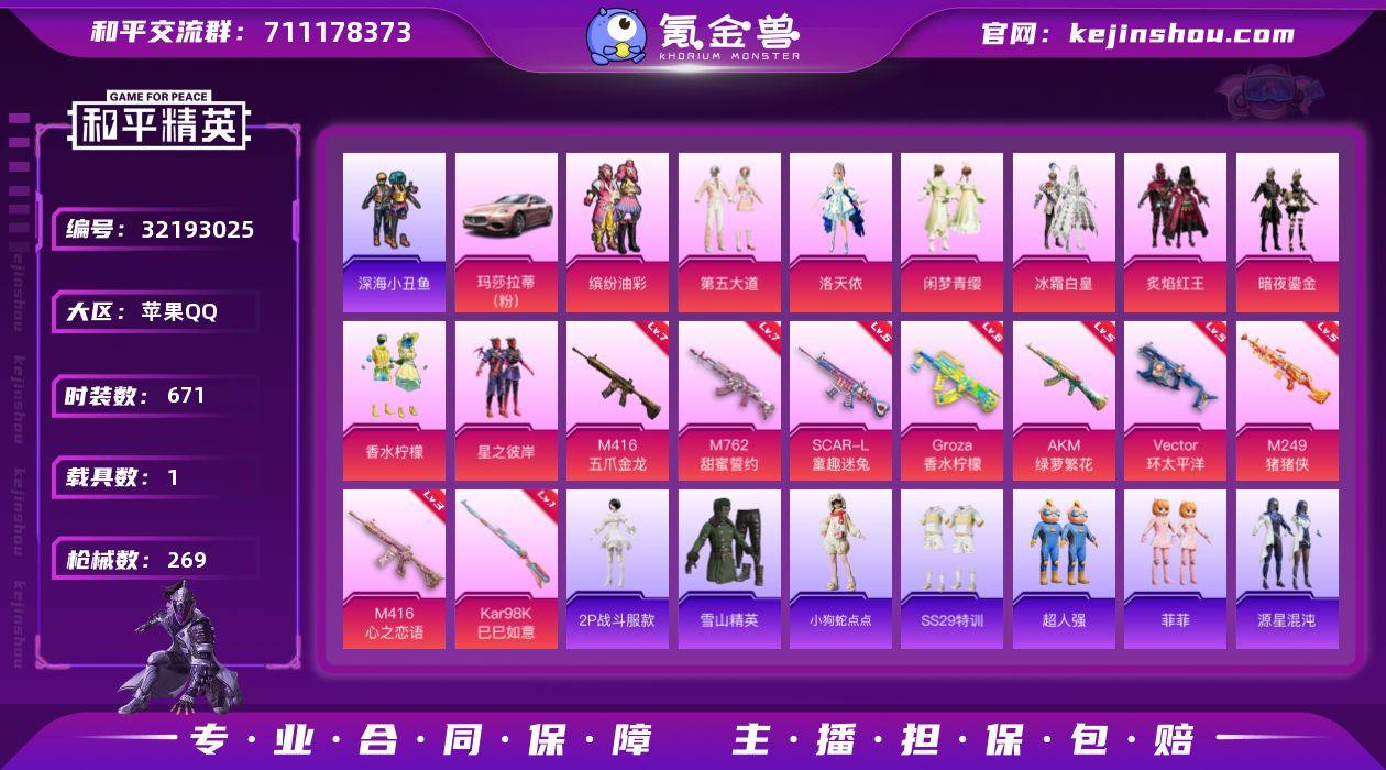 【特价出售】地铁天赋未解锁苹果Q-2稀有1载具9粉装11特效枪33热门182套装269枪皮 84954热力值 24印记 历史超级王牌11星 【2稀有】 AKM-缤纷海域 AKM-百万伏特 【1载具】 玛莎拉蒂粉色 【9粉装】 洛天依 闲梦青缨 缤纷油彩 第五大道 暗夜鎏金 香水柠檬 冰霜白皇 炙焰红王 星之彼岸 【11特效枪】 M416-五爪金龙 (7级) M416-心之恋语 (3级) AKM-绿萝繁花 (5级) Kar98K-巳巳如意 (1级) M249-猪猪侠 (5级) M762-甜蜜誓约 (7级) GROZA-香水柠檬 (6级) SCAR-L-童趣迷兔 (6级) Mk14-福马献瑞 (5级) ACE32-萌骑漫游 (3级) Vector-环太平洋 (5级) 【33热门】 龟仙人 2P战斗服款 仓鼠灰灰 雪山精英 动感兔斯基 小狗蛇点点 爱崽白熊 梦魇先生 呆萌铁蟹 万圣娃娃 花面小丑 鹰眼刺客 蔷薇魔法师 恶魔喵喵 迅捷狂鲨 深海小丑鱼 童话森林 暗夜契约 醒狮腾龙 团圆交子 瑞龙福将 纯白誓言 漫步者 冰爽海盐 粉甜马卡龙 破蛋小黄鸡 软嫩糖心蛋 黑色刀锋 M416-仓鼠灰灰 M762-潮萌小黄鸭 M762-瑞龙福将 Kar98K-深海曼妙 M24-香水柠檬 【1飞行器】 梦幻火箭飞行器 【5头盔】 童趣迷兔头盔 梦幻火箭头盔 仓鼠灰灰头盔 甜心宝贝头盔 甜蜜誓约头盔 【6背包】 折纸暴龙背包 木曜青龙背包 仓鼠灰灰背包 甜心宝贝背包 深海小丑鱼背包 甜蜜誓约背包