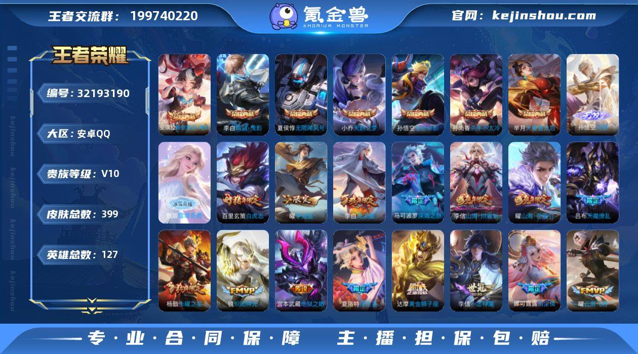 【秒换绑】安卓Q-V10-【金标李白】最强王者段位-129英雄-423皮肤-8典藏皮肤-1典藏英雄-3无双-1珍品传说-42传说-128史诗 【英雄全皮】:孙权全皮,钟馗全皮,敖隐全皮,空空儿全皮,影全皮 【荣耀典藏】:武则天英雄,孙悟空全息碎影,武则天倪克斯神谕,夏侯惇无限飓风号,小乔天鹅之梦,孙尚香杀手不太冷,鲁班七号星空梦想,芈月大秦宣太后,韩信弑枪猎影 【无双皮肤】:李白碎月剑心,铠神罪,孙悟空无相 【珍品传说】:伽罗沧流箭 【传说皮肤】:云缨神骥越千峰,关羽神骥镇沧海,朵莉亚神骥鸣幻洲,狄仁杰神骥赴朔漠,貂蝉神骥聚万邦,马超神骥逐星野,花木兰异界灵契,杨戬纵目迁山,后羿神树通天,朵莉亚心动手记,马超琥珀纪元,艾琳觅芳踪,马可波罗妄想实况,东皇太一灼幽烈阳,公孙离祈雪灵祝,诸葛亮时雨天司,虞姬启明星使,孙悟空零号赤焰,关羽武圣,曜云鹰飞将,李信一念神魔,刘备时之恋人,伽罗太华,貂蝉猫影幻舞,张良黄金白羊座,干将莫邪久胜战神,虞姬云霓雀翎,达摩黄金狮子座,百里玄策白虎志,花木兰冠军飞将,梦奇胖达荣荣,后羿黄金射手座,杨戬永曜之星,诸葛亮武陵仙君,貂蝉仲夏夜之梦,李白凤求凰,孙尚香末日机甲,宫本武藏地狱之眼,孙悟空地狱火,吕布天魔缭乱,武则天海洋之心,狄仁杰超时空战士 【限定皮肤】:白起狰,姜子牙天穹之誓,狄仁杰阴阳师,虞姬凯尔特女王,赵云皇家上将,赵云引擎之心,赵云龙胆,妲己热情桑巴,妲己时之彼端,嬴政白昼王子,鲁班七号狮舞东方,庄周蜃楼王,庄周玄嵩,阿轲迷踪丽影,芈月重明,吕布天魔缭乱,吕布猎兽之王,吕布御风骁将,周瑜赤莲之焰,元歌无心,夏侯惇朔风刀,甄姬幽恒,曹操烛龙,曹操天狼征服者,典韦穷奇,典韦蓝屏警告,典韦岱宗,马可波罗逐梦之星,马可波罗暗影游猎,马可波罗妄想实况,狄仁杰魔术师,狄仁杰万华元夜...