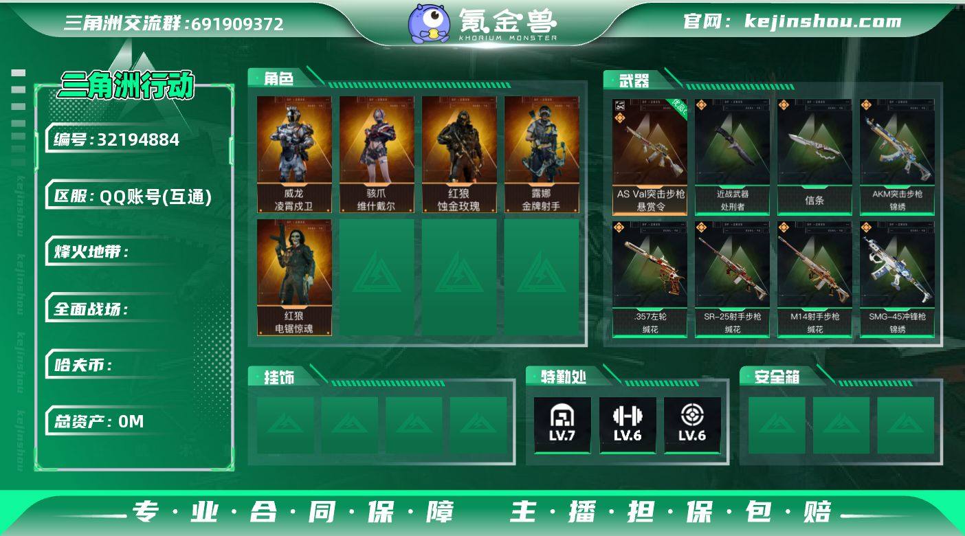 【蚀金玫瑰全套+凌霄戍卫全套+维什戴尔全套+红狼-电锯惊魂套+信条套+处刑者单刀+优品C悬赏令+S8赛季9格保险箱+资产87M(流动61.5M+不动25.5M)+特勤高等级(仓库7体力6负重6)+烽火60级+S7赛季皮肤+缄花捆绑包+锦绣捆绑包+咖啡豆+S7巅峰战神+非洲之心】yx3758