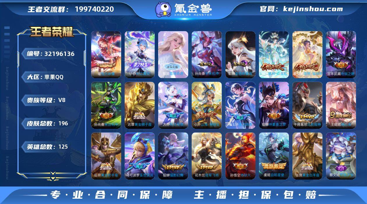 【W5973】【亮点:6.3K场次妹子号-中路38段-游走39段】苹果Q-可二次-贵8-125英雄-196皮肤-1典藏-2星元-2无双-18传说-70限定-7按键-贵族积分81836-营地ID:1890043181(热门:瑶拾光映像-甄姬雪境奇遇,小乔时之魔女-杨玉环星之鸣奏,妲己愿照众生和,蔡文姬愿照福禄聚,王昭君映山客,大乔时之奇旅-小乔山海琳琅生) 【星元皮肤】:孙尚香未来机甲,貂蝉金色仲夏夜