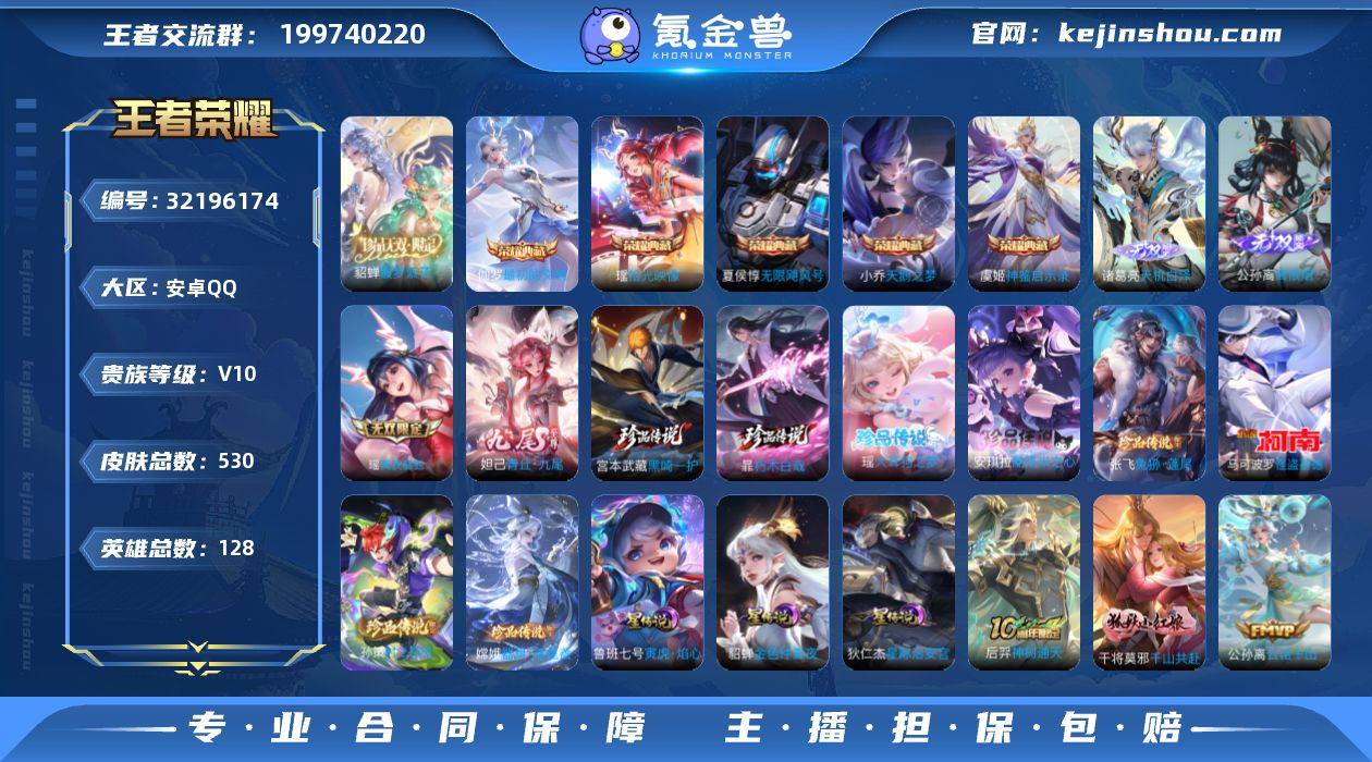 C-DD3020 安卓QQ V10 530皮 女号 5典藏4无双8珍品传说【游走34段 中路33段 满级灵宝】貂蝉珍品无双 3星元189限定44传说 金标大禹/金蝉 275幸运值 28按键1天幕 3137星币 713英雄碎片 863皮肤碎片 13张改名卡 8荣耀印记 营地号:98397599 【珍品传说】怪盗基德,孙策时之奇旅,器灵·落星盏,兔狲·蓬尾,黑崎一护,朽木白哉,酷洛米之心,大耳狗之梦, 【无 双】真我赫兹瑶,青丘·九尾,离恨烟,馥梦繁花,天机白泽, 【荣耀典藏】天鹅之梦,无限飓风号,神鉴启示录,拾光映像,最初的交响, 【星元皮肤】金色仲夏夜,星际治安官,寅虎·焰心, 【热门限定】愿照·众生和,愿照·岁时盈,愿照·千秋盛,愿照·福禄聚,器灵·浮梦炉,逐花归海,乘龙·问璇玑,乘龙·聚宝船,龙胆,冰锋战神,白鹤梁神女,曦玄引女,琥珀纪元伽罗,奔雷神使,天狼运算者,寅虎·瑞焰,寅虎·心曲,寅虎·展翼,白晶晶,时之奇旅,飞衡,霸王别姬女,魔法小厨娘,暗影游猎,热情桑巴,挚爱花嫁,挚爱之约,奇迹圣诞,时之奇旅,山海·琳琅生,山海·碧波行,启明星使,女儿国国王,埋骨钱,逐霄战戟,巫礼祀神,万灵启世,千山共赴,涂山容容,幻珠鲛人, 【限定传说】拒霜思,猫狗日记男,久胜战神,一念神魔,猫狗日记女,电玩小子,云鹰飞将,地狱之眼,苍穹之光,暗夜猫娘,游龙清影,时之恋人男,时之恋人女,诗语江南,龙鼓争鸣,音你心动女,修罗,乞巧织情,无双飞将,龙骑士,梁祝,未来纪元,神迹守卫,云霓雀翎,千筹问战,黄金白羊座,黄金射手座,天秀·幻梦,天秀·音浪,天秀·启明,黄金分割率,超时空战士,碎云,仲夏夜之梦,音你闪耀,魅语,晚萤,花朝如约,千年之狐,滕王阁序,末日机甲男,末日机甲女,遇见神鹿,雪上飞焰,唤灵魅影,真我赫兹镜,无限星赏官,原初探秘者,黎明之约,小动物乐团,暗隐猎兽者,霜月吟,水晶猎龙者,金属风暴,朵莉亚心动手记,地狱岩魂,热力回旋,上官婉儿群星魔术团,特工魅影,曙光守护者,白龙吟,圣诞恋歌,青蛇,白蛇,舞动...