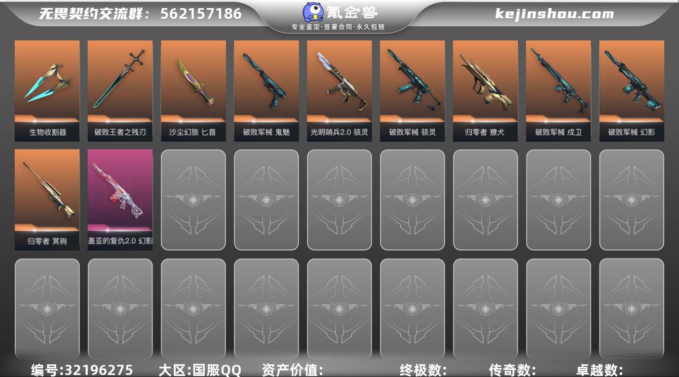 MWW594【归零者 破败军械】【游戏等级】Lv103 【段位】 黑铁III 【R点】810 【皮肤总价值】27,720 【英雄数量】23 【皮肤数量】58 【挂饰数量】61 【卡面数量】81 【喷漆数量】72 【鬼魅】鬼魅-星云暗涌 鬼魅-采蜜小蜂队 鬼魅-破败军械 鬼魅-胡桃狂想 鬼魅-信手涂鸦 【正义】正义-纳米打击 正义-沙尘幻旅 【近战武器】近战武器-超能偶像应援棒 近战武器-破败王者之残刃 近战武器-沙尘幻旅匕首 近战武器-弧光异彩军刀 近战武器-生物收割器 【标配】标配-超能偶像 标配-杀毒执行 标配-彩梦之城 【幻影】幻影-聚合之力 幻影-破败军械 幻影-侦察力量 幻影-噬源兽防卫工程 幻影-砰砰X特攻队 幻影-盖亚的复仇//2.0 【獠犬】獠犬-采蜜小蜂队 獠犬-胡桃狂想 獠犬-弧光异彩 獠犬-归零者 【戍卫】戍卫-超能偶像 戍卫-破败军械 戍卫-萌彩剪影 戍卫-彩梦之城 【飞将】飞将-聚合之力 飞将-沙尘幻旅 飞将-信手涂鸦 【狂徒】狂徒-超能偶像 狂徒-沙尘幻旅 狂徒-盖亚的复仇 狂徒-偃月苍龙 狂徒-归零者 狂徒-弧光异彩 【判官】判官-采蜜小蜂队 判官-超能偶像 判官-萌彩剪影 【蜂刺】蜂刺-聚合之力 蜂刺-胡桃狂想 蜂刺-弧光异彩 【战神】战神-采蜜小蜂队 战神-萌彩剪影 【狂怒】狂怒-聚合之力 狂...