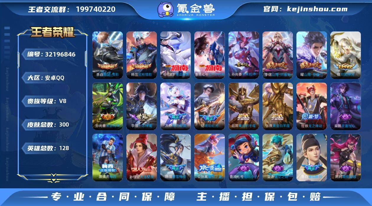 ·九霄神辉·弑枪猎影·江户川柯南·怪盗基德·铠琥珀纪元·山海苍雷引·山海炽霜斩·启示之音·大乔时之奇旅·映山客·一念神魔·炽阳神光·可二次】w18403-安卓Q-128英雄-300皮肤-16王者印记-220铭文-贵族积分7w【贵族8】【3典藏·2珍品·1星传说·14传说·9按键】【因赛季更新游戏段付以上号为准!】 【英雄全皮】:影全皮 【荣耀典藏】:李白鸣剑曳影,花木兰九霄神辉,韩信弑枪猎影 【珍品传说】:鲁班七号江户川柯南,马可波罗怪盗基德 【星元皮肤】:孙尚香未来机甲 【传说皮肤】:王昭君映山客,桑启鸣野蒿,铠琥珀纪元,大乔时之奇旅,曜山海苍雷引,李信山海炽霜斩,吕布怒海麟威,露娜启示之音,镜炽阳神光,虞姬启明星使,李信一念神魔,张良黄金白羊座,后羿黄金射手座,孙尚香末日机甲 【限定皮肤】:白起狰,蒙犽顽岩魄,蔡文姬夏日便利店,虞姬夏日便利店,姜子牙天穹之誓,杨戬破阵退雄兵,李白谪仙醉月,狄仁杰阴阳师,赵云皇家上将,庄周高山流水,高渐离玩趣恶龙,阿轲迷踪丽影,芈月重明,元歌云间偶戏,元歌无心,夏侯惇朔风刀,甄姬游园惊梦,曹操烛龙,典韦穷奇,典韦蓝屏警告,马可波罗山海玄木吟,狄仁杰魔术师,狄仁杰万华元夜,达摩沙漠行僧,项羽海滩派对,老夫子醍醐杖,程咬金演武夺筹,露娜启示之音,韩信飞衡,韩信傲雪梅枪,兰陵王金庭之子,孙悟空大圣娶亲,牛魔御旌,李元芳银河之约,李元芳云中旅人,虞姬启明星使,钟馗驱傩正仪,女娲朔望之晖,雅典娜黎明之约,太乙真人饕餮,太乙真人华丽摇滚,鬼谷子原初探秘者,大乔时之奇旅,苏烈千军破阵,百里玄策原初追逐者,弈星混沌棋,梦奇顽趣,公孙离蜜橘之夏,沈梦溪大漠名商,沈梦溪匿光破解者,明世隐疑决卦,裴擒虎擒涛扼浪,狂铁御狮,米莱狄御霄,瑶山海碧波行,云中君纤云弄巧,李信山海炽霜斩,盾山御銮,嫦娥拒霜思,曜山海苍雷引,西...