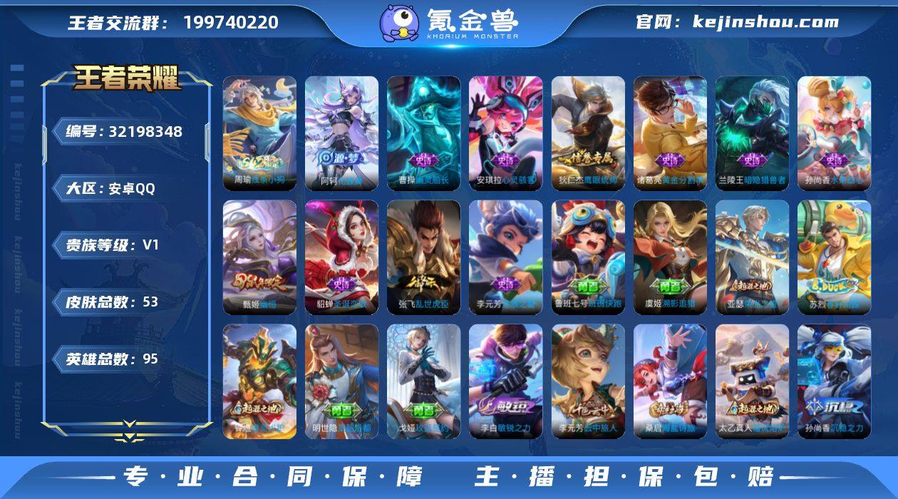 安卓Q-V0-最强王者段位-95英雄-53皮肤-12史诗【限定皮肤】:狄仁杰阴阳师,甄姬幽恒,达摩沙漠行僧,项羽海滩派对,李元芳云中旅人,沈梦溪大漠名商,桑启海盐诗旅,张良古海寻踪,鬼谷子天穹祈灯【年限皮肤】:甄姬幽恒【赛季限定】:达摩沙漠行僧,沈梦溪大漠名商,李元芳云中旅人,桑启海盐诗旅,张良古海寻踪,鬼谷子天穹祈灯,太乙真人谧流熔炉,钟馗虚灵犬护,亚瑟荣光之誓【战令限定】:周瑜线条小狗【史诗皮肤】:周瑜线条小狗,百里玄策罗小黑战记,阿轲化蝶舞,甄姬幽恒,狄仁杰鹰眼统帅,李元芳逐浪之夏,安琪拉心灵骇客,诸葛亮黄金分割率,兰陵王暗隐猎兽者,张飞乱世虎臣,曹操幽灵船长,孙尚香水果甜心,貂蝉圣诞恋歌【其他皮肤】:鲁班七号班班快跑,虞姬溯影追猎,亚瑟荣光之誓,苏烈春野闲踪,钟馗虚灵犬护,刘备浪漫序章,戈娅玫蓝誓约,明世隐景韶洛都,太乙真人谧流熔炉,鬼谷子天穹祈灯,张良古海寻踪,赵怀真太极少年,白起乐园追猎者,桑启海盐诗旅,戈娅危途狂花,李元芳云中旅人,沈梦溪大漠名商,达摩沙漠行僧,李白敏锐之力,孙尚香沉稳之力,王昭君幻想奇妙夜,狄仁杰阴阳师,后羿阿尔法小队,刘备万事如意,甄姬花好人间,亚瑟死亡骑士,典韦黄...