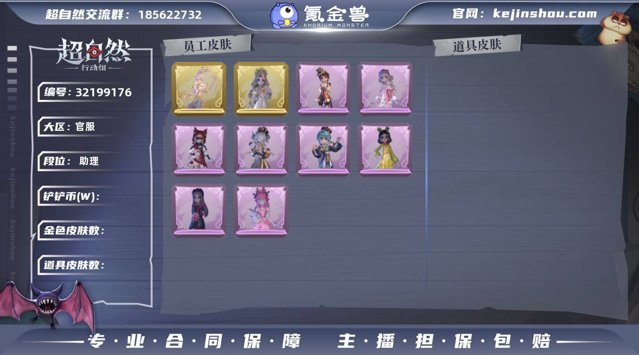 段位助理 2金8紫 莲华渡 圣光之谕 呱呱雨衣 甜梦派对 丝缕哀歌 庆宴绮愿 迷途僵宝 莓果陷阱 除妖小师妹 情公主 超自然行动组账号