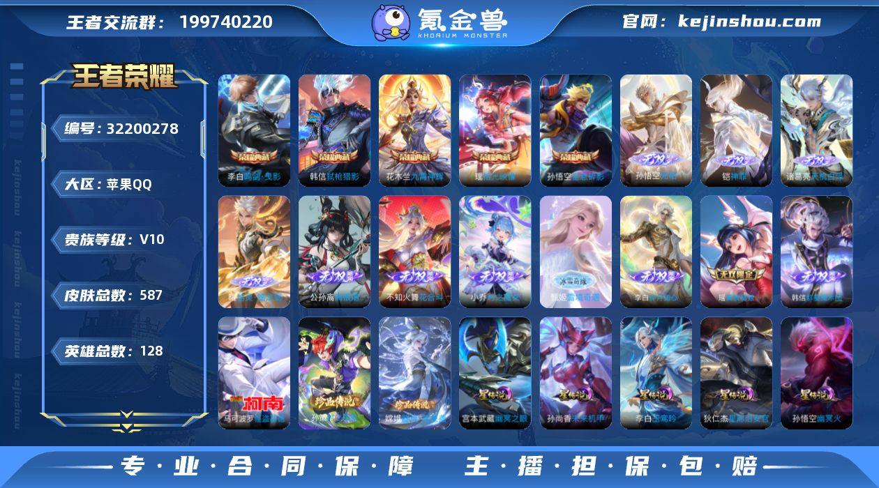 CHC30268,1天幕/6星元/53按键,苹果Q-V10-至尊星耀III段位-128英雄-587皮肤-5典藏皮肤-11无双-3珍品传说-84传说-190史诗 【英雄全皮】:廉颇全皮,刘禅全皮,元歌全皮,典韦全皮,李白全皮,司马懿全皮,刘邦全皮,孙权全皮,苍全皮,女娲全皮,雅典娜全皮,黄忠全皮,百里玄策全皮,狂铁全皮,孙策全皮,猪八戒全皮,亚连全皮,嫦娥全皮,曜全皮,蒙犽全皮,鲁班大师全皮,蒙恬全皮,阿古朵全皮,司空震全皮,赵怀真全皮,戈娅全皮,空空儿全皮,影全皮 【荣耀典藏】:孙悟空全息碎影,李白鸣剑曳影,花木兰九霄神辉,韩信弑枪猎影,瑶拾光映像 【无双皮肤】:孙悟空无相,铠神罪,诸葛亮天机白泽,曜器灵螭龙剑,甄姬雪境奇遇,公孙离离恨烟,不知火舞花合斗,韩信群星魔术团,小乔时之魔女,李白碎月剑心,瑶真我赫兹 【珍品传说】:嫦娥器灵落星盏,孙策时之奇旅,马可波罗怪盗基德 【传说皮肤】:王昭君长夜焕生,后羿神树通天,干将莫邪千山共赴,元歌诡秘之主,大司命死亡执政官,司马懿九山相柳,杨玉环星之鸣奏,后羿千劫归真,司空震愿照山河定,女娲愿照千秋盛,妲己愿照众生和,澜愿照九州拓,蔡文姬愿照福禄聚,虞姬愿照岁时盈,云缨幻光神枪,裴擒虎祥瑞亨通,桑启鸣野蒿,夏侯惇霜北刀,墨子黄金天蝎座,海月金乌负日,亚连落雪白狼,吕布曦玄引,貂蝉曦玄引,典韦战鼓燎原,孙尚香乘龙问璇玑,孙策乘龙淬吴钩,赵云乘龙铭钟鼎,马超琥珀纪元,铠琥珀纪元,澜逐花归海,艾琳觅芳踪,露娜霜月吟,狄仁杰夜礼服假面,吕布遇见神鼓,云缨鹤归松栖,干将莫邪画中仙,花木兰燃星之曲,项羽无限倾心,伽罗炽翼辉光,孙悟空齐天大圣,小乔山海琳琅生,曜山海苍雷引,李信山海炽霜斩,吕布怒海麟威,李白诗剑行,狄仁杰神器狴犴令,百里守约碎云,马可波罗深海之息,马超无双飞将,孙策挚爱之约,露娜启示...