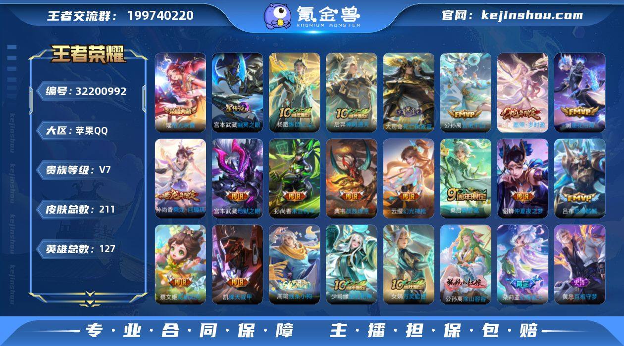 苹果Q-V7-永恒钻石IV段位-127英雄-211皮肤-1典藏皮肤-18传说-57史诗【英雄全皮】:孙权全皮,敖隐全皮,空空儿全皮,影全皮【荣耀典藏】:瑶拾光映像【传说皮肤】:狄仁杰神骥赴朔漠,貂蝉神骥聚万邦,杨戬纵目迁山,后羿神树通天,大司命死亡执政官,公孙离云诺千山,虞姬愿照岁时盈,云缨幻光神枪,桑启鸣野蒿,典韦战鼓燎原,孙尚香乘龙问璇玑,澜逐花归海,吕布怒海麟威,蔡文姬花朝如约,铠绛天战甲,貂蝉仲夏夜之梦,孙尚香末日机甲,宫本武藏地狱之眼【限定皮肤】:姜子牙天穹之誓,杨戬破阵退雄兵,狄仁杰阴阳师,赵云皇家上将,孙尚香蔷薇恋人,庄周高山流水,高渐离玩趣恶龙,元歌无心,狄仁杰魔术师,狄仁杰万华元夜,达摩沙漠行僧,项羽海滩派对,老夫子醍醐杖,兰陵王金庭之子,孙悟空至尊宝,后羿辉光之辰,后羿如梦令,李元芳云中旅人,钟馗驱傩正仪,鬼谷子原初探秘者,鬼谷子五谷丰年,苏烈千军破阵,沈梦溪大漠名商,裴擒虎擒涛扼浪,盾山御銮,鲁班大师探海日志,桑启海盐诗旅,阿古朵江河有灵,张良古海寻踪,蒙犽百解令,鬼谷子天穹祈灯,孙尚香乘龙问璇玑,沈梦溪龙舞盛年,刘邦剑破天穹,程咬金群星魔术团,刘备异域游侠,周瑜熔金海岸【年限皮肤】:后羿辉光之辰,孙尚香乘龙问璇玑,虞姬愿照岁时盈【赛季限定】:盾山御銮,老夫子醍醐杖,鬼谷子原初探秘者,狄仁杰万华元夜,钟馗驱傩正仪,苏烈千军破阵,达摩沙漠行僧,兰陵王金庭之子,沈梦溪大漠名商,李元芳云中旅人,桑启海盐诗旅,裴擒虎擒涛扼浪,鲁班大师探海日志,张良古海寻踪,鬼谷子天穹祈灯,刘邦剑破天穹,姜子牙天穹之誓,东皇太一噬灭天穹,太乙真人谧流熔炉,钟馗虚灵犬护,甄姬逆浪荇歌,亚瑟荣光之誓【战令限定】:百里守约百相守梦,老夫子百相守梦,周瑜线条小狗【史诗皮肤】:盘古撼世英歌,周瑜线条小狗,少司缘...