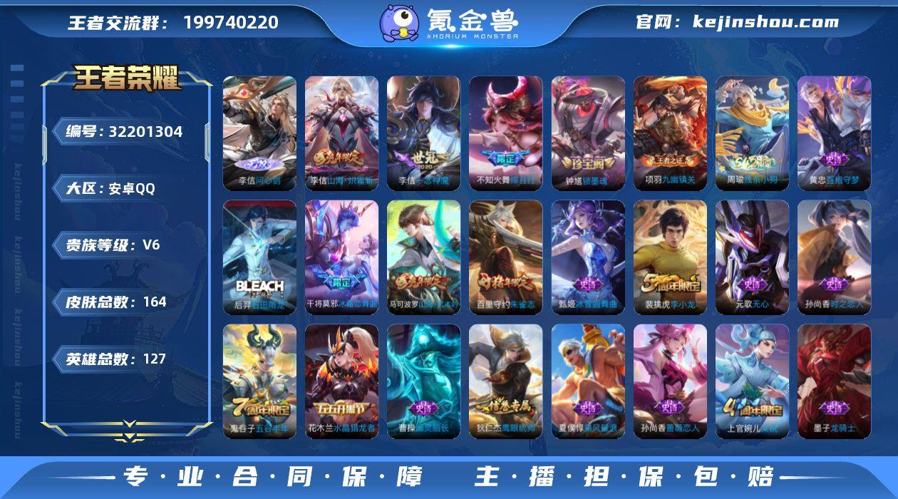 BHC11858,对抗路43段/1.3小国标李信/1.1小国标百里守约/1.1不知火舞/1.0马可波罗-钟馗,安卓Q-V6-最强王者段位-127英雄-164皮肤-1无双-3传说-39史诗 【英雄全皮】:李信全皮 【无双皮肤】:李信问心剑 【传说皮肤】:李信山海炽霜斩,不知火舞绯月行,李信一念神魔 【限定皮肤】:姜子牙天穹之誓,狄仁杰阴阳师,赵云皇家上将,孙尚香蔷薇恋人,元歌无心,夏侯惇朔风刀,马可波罗山海玄木吟,狄仁杰魔术师,狄仁杰万华元夜,达摩沙漠行僧,项羽海滩派对,老夫子醍醐杖,程咬金演武夺筹,兰陵王金庭之子,不知火舞绯月行,牛魔御旌,李元芳云中旅人,钟馗驱傩正仪,干将莫邪冰霜恋舞曲,雅典娜黎明之约,太乙真人华丽摇滚,鬼谷子原初探秘者,鬼谷子五谷丰年,苏烈千军破阵,百里玄策原初追逐者,百里守约朱雀志,弈星混沌棋,梦奇顽趣,沈梦溪大漠名商,明世隐疑决卦,裴擒虎李小龙,裴擒虎擒涛扼浪,李信山海炽霜斩,盾山御銮,上官婉儿梁祝,鲁班大师探海日志,桑启海盐诗旅,阿古朵江河有灵,张良古海寻踪,蒙恬荣光圣徽,鬼谷子天穹祈灯,沈梦溪龙舞盛年,刘邦剑破天穹,程咬金群星魔术团 【年限皮肤】:百里守约朱雀志,李信山海炽霜斩,马可波罗山海玄木吟 【赛季限定】:牛魔御旌,盾山御銮,夏侯惇朔风刀,弈星混沌棋,明世隐疑决卦,老夫子醍醐杖,鬼谷子原初探秘者,狄仁杰万华元夜,程咬金演武夺筹,钟馗驱傩正仪,苏烈千军破阵,达摩沙漠行僧,兰陵王金庭之子,沈梦溪大漠名商,李元芳云中旅人,桑启海盐诗旅,裴擒虎擒涛扼浪,鲁班大师探海日志,张良古海寻踪,鬼谷子天穹祈灯,刘邦剑破天穹,姜子牙天穹之誓,东皇太一噬灭天穹,太乙真人谧流熔炉,甄姬逆浪荇歌,亚瑟荣光之誓,百里玄策原初追逐者,雅典娜黎明之约,梦奇顽趣,蒙恬荣光圣徽,牛魔星界战将,项羽九幽镇关 【战令限定】:周瑜线条小...