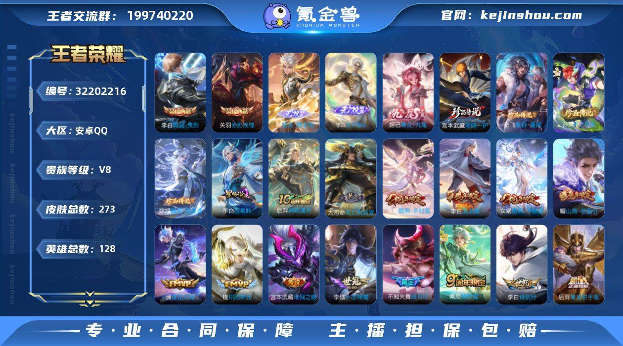 可换绑【高性价比号·关羽李白典藏·曜李白妲己3无双·4珍品·绯月行·凤求凰·多传说限定号】4363星币 1星传说,16按键,13王者印记,200五级铭文,可二次CD17184,安卓Q-V8-273皮肤-2典藏皮肤-3无双-4珍品传说-21传说-81史诗 【英雄全皮】:李白全皮,大司命全皮【荣耀典藏】:李白鸣剑曳影,关羽赤影疾锋【无双皮肤】:妲己青丘九尾,李白碎月剑心,曜器灵螭龙剑【星元皮肤】:李白玉鸾吟【珍品传说】:孙策时之奇旅,嫦娥器灵落星盏,张飞兔狲蓬尾,宫本武藏黑崎一护【传说皮肤】:后羿神树通天,大司命死亡执政官,女娲愿照千秋盛,虞姬愿照岁时盈,桑启鸣野蒿,澜逐花归海,曜山海苍雷引,李白诗剑行,不知火舞绯月行,露娜启示之音,镜炽阳神光,虞姬启明星使,李信一念神魔,张良黄金白羊座,虞姬云霓雀翎,花木兰冠军飞将,梦奇胖达荣荣,后羿黄金射手座,李白凤求凰,宫本武藏地狱之眼,孙悟空地狱火【限定皮肤】:蔡文姬夏日便利店,虞姬夏日便利店,姜子牙天穹之誓,李白谪仙醉月,狄仁杰阴阳师,赵云皇家上将,孙尚香蔷薇恋人,鲁班七号狮舞东方,高渐离玩趣恶龙,扁鹊奇幻香踪,马可波罗暗影游猎,马可波罗山海玄木吟,狄仁杰魔术师,达摩沙漠行僧,项羽海滩派对,关羽百相守梦,安琪拉魔法小厨娘,露娜启示之音,兰陵王金庭之子,花木兰青春决赛季,不知火舞绯月行,孙悟空至尊宝,李元芳云中旅人,虞姬启明星使,杨戬潮玩骑兵,雅典娜黎明之约,百里玄策原初追逐者,梦奇顽趣,裴擒虎擒涛扼浪,云中君纤云弄巧,曜山海苍雷引,鲁班大师探海日志,桑启海盐诗旅,艾琳流音漫舞,司空震地狱燃心,阿古朵江河有灵,张良古海寻踪,蒙犽百解令,蒙恬荣光圣徽,高渐离燃音魔法,妲己灵卜魔法,鬼谷子天穹祈灯,李白碎月剑心,伽罗琥珀纪元,安琪拉乘龙聚宝船,沈梦溪龙舞盛年,鲁班七号蔬乡物语,李元芳蔬乡物...