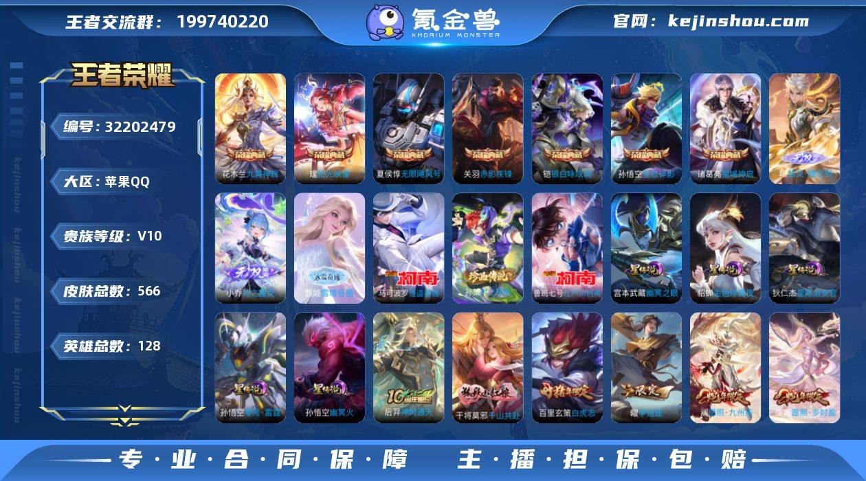 可换绑【捡漏V10精品号·金标万战关羽·7典藏·曜甄姬小乔3无双·3珍品江户川柯南怪盗基德·情人节吕布貂蝉·马超铠琥珀纪元·画中仙·燃星之曲·前尘镜·无尽星芒·李逍遥·天魔缭乱·牛年全套·神奇女侠·多传说限定质量号】243幸运值 315戳戳 5星传说,30按键,5天幕,22王者印记,满级铭文,可二次BX5011,苹果Q-V10-566皮肤-7典藏皮肤-3无双-3珍品传说-78传说-191史诗 【英雄全皮】:扁鹊全皮,刘邦全皮,孙权全皮,娜可露露全皮,橘右京全皮,东皇太一全皮,鬼谷子全皮,沈梦溪全皮,狂铁全皮,盾山全皮,猪八戒全皮,敖隐全皮,鲁班大师全皮,蒙恬全皮,夏洛特全皮,司空震全皮,金蝉全皮,空空儿全皮,影全皮【荣耀典藏】:孙悟空全息碎影,夏侯惇无限飓风号,诸葛亮星域神启,花木兰九霄神辉,关羽赤影疾锋,铠银白咏叹调,瑶拾光映像【无双皮肤】:曜器灵螭龙剑,甄姬雪境奇遇,小乔时之魔女【珍品传说】:孙策时之奇旅,鲁班七号江户川柯南,马可波罗怪盗基德【星元皮肤】:孙悟空零号雷霆,狄仁杰星际治安官,宫本武藏幽冥之眼,孙悟空幽冥火,貂蝉金色仲夏夜【天幕】:金虎啸春天幕,秋月华灯天幕,鲲天幕,凤鸣九霄天幕,怪盗基德天幕【传说皮肤】:后羿神树通天,干将莫邪千山共赴,司空震愿照山河定,女娲愿照千秋盛,妲己愿照众生和,澜愿照九州拓,蔡文姬愿照福禄聚,虞姬愿照岁时盈,云缨幻光神枪,王昭君映山客,桑启鸣野蒿,亚连落雪白狼,吕布曦玄引,貂蝉曦玄引,典韦战鼓燎原,孙尚香乘龙问璇玑,孙策乘龙淬吴钩,赵云乘龙铭钟鼎,马超琥珀纪元,铠琥珀纪元,澜逐花归海,艾琳觅芳踪,露娜霜月吟,吕布遇见神鼓,东皇太一灼幽烈阳,张飞百相守梦,夏洛特浮生妄,干将莫邪画中仙,花木兰燃星之曲,伽罗炽翼辉光,孙悟空齐天大圣,小乔山海琳琅生,曜山海苍雷引,李信山海炽霜斩,吕布怒海麟威,李白诗剑行...