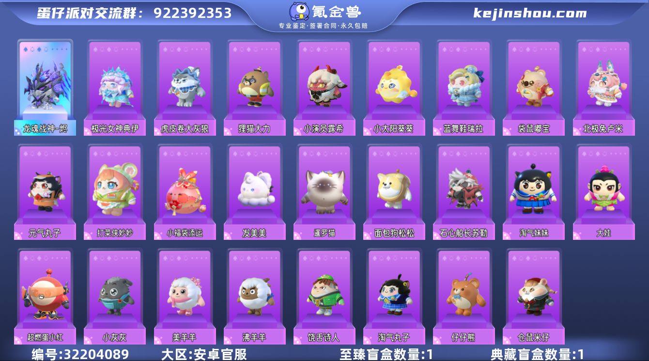 1彩27紫 龙魂战神烬 淘气妹妹暹罗猫 小福袋添运 面包狗松松 极光 历史潮流:3.7万 段位:三阶鸡蛋 等级:61 性别:女 幻彩套装数量:1 紫色套装数量:27 幻彩套装:龙魂战神烬 紫色套装:抽象蛋小黄 淘气妹妹 石心船长苏勒 打菜侠妙妙 元气丸子 小浮冰 袋鼠嘟宝 狸猫大力 仓鼠米仔 饶舌诗人 超燃蛋小红 大娃 发美美 暹罗猫 小福袋添运 面包狗松松 极光女神典伊 北极兔卢米 小太阳葵葵 蓝舞鞋瑞拉 小演员露希 沸羊羊 美羊羊 小灰灰 虎皮卷大灰狼 仔仔熊 淘气丸子 背饰:风雷翼 玩具:随行召唤器 "