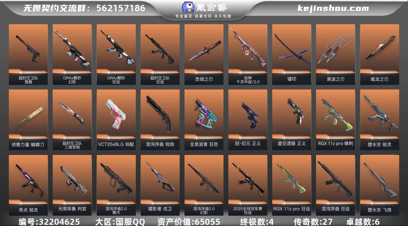 【自带包赔 可赔三倍】:库存价值 65055 25冠军悲悯限定 精品成品号 号上还有1942点卷 喜欢可谈!!! 【限定】: 无畏契约季前邀请赛 悲悯之刃, 2025全球冠军赛 狂徒 【近战】: 超时空卫队 三棱军刺, 无畏契约季前邀请赛 悲悯之刃, 黑波之刃, 威龙之刃, 镭切, 侦察力量 蝴蝶刀 【狂徒】: 日冕雄师 狂徒, ORA x 颗秒 狂徒, RGX 11z Pro 狂徒, 超时空卫队 狂徒, 混沌序曲 狂徒, 2025全球冠军赛 狂徒 【幻影】: ORA x 颗秒 幻影, 混沌序曲//2.0 幻影 【冥驹】: 堕天遗武 冥驹 【正义】: 创·纪元 正义, 虚空遗器 正义 【戍卫】: 噬影者 戍卫, 天界神兵 戍卫 【獠犬】: 混沌序曲//2.0 獠犬 【鬼魅】: 超时空卫队 鬼魅 【骇灵】: 塑水宗 骇灵, 奇点 骇灵 【标配】: VCT25 x BLG 标配 【短炮】: 混沌序曲 短炮 【狂怒】: 全息波普 狂怒 【蜂刺】: RGX 11z Pro 蜂刺 【雄鹿】: 离子武器 雄鹿 【判官】: 光荣异象 判官 【飞将】: 塑水宗 飞将 【战神】: 千灵华绽//2.0 战神 【奥丁】: 掠影//2.0 奥丁 【莽侠】: RGX 11z Pro//3.0 莽侠 【概要】: 总皮肤80 终极4 传奇27 卓越6 刀皮6 英雄28 LV112 历史最高:钻石 当前段位:超凡 已使用 1330 R点 剩余 10 R点 可二次 卡面、挂饰、其他皮肤请看截图 道具、段位等以实际验号为准。如账号因没有维护,赛季更新等不可抗因素发生变化,不属于账号质量问题"