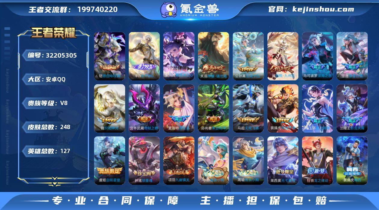 金标 刘禅 裴擒虎 铠 牛魔 香香机甲安卓手Q531区248皮1典藏14传说1无双1珍品传说V8 营地ID408753962非凡王者【珍品传说皮肤】:酷洛米之心【无双皮肤】:碎月剑心【荣耀典藏】:银白咏叹调【优质限定皮肤】:神威,无双飞将,梅西【传说皮肤】:神骥·镇沧海,地狱之眼,炽阳神光,浮生妄,影龙天霄,星之鸣奏,祥瑞亨通,愿照·九州拓,落雪白狼,无双飞将,深海之息,末日机甲,云诺千山,启明星使【史诗皮肤】:心动手记,锁墨魂,偶像歌手,九幽镇关,线条小狗,胡桃异想国,光弋星穹,龙之律动,茶境仙,玫瑰异探,德古拉伯爵,神威,引擎之心,傲雪梅枪,器灵·浮梦炉,圣诞恋歌,女仆咖啡,星界战将,苍穹之光,绅士熊喵,金属风暴,摇滚巨星,特工魅影,航海奇遇记,节奏热浪,燃音魔法,时之恋人,心灵骇客,乱世虎臣,天才门将,荣光圣徽,幽灵船长,冰雪圆舞曲,黎明之约,水果甜心,猫狗日记,魅语,顽趣,水晶猎龙者,赏金猎手,魔术师,黄金分割率,鬼剑武藏,原初追逐者,永昼,地狱岩魂,玉兔公主,舞动绿茵,火炮绅士,暗渊魔法,皇家上将,曙光守护者,逐梦之影,千年之狐,圣诞狂欢,乘风破浪,李小龙,鹰眼统帅,蓝屏警告,梅西,遇见飞天,魅力维加斯,晚萤,星夜王子,功夫厨神,五谷丰年,龙骑士,蜜橘之夏