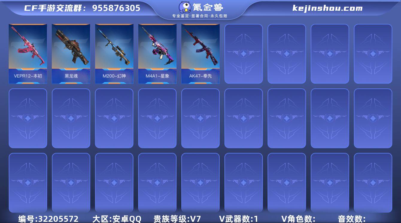 苹果QQ,角色等级:150,实名:有修改人脸机会/实名是本人,段位:专家,VIP等级:V8,V武器数量:406,V角色数量:10,V总数量:267,王者武器数:15,万化数量:59, 【人物角色】洛克,关小雨,瞳,樱,幽灵刀锋,复仇者,葵,洛伊,夏日灵狐,春节兰,幻影,猎狐者,斯沃特,零-新生,钟小魁,秦师,炽天使-X,武媚,云悠悠-心动起点,龙妹,木兰,蜀雪,变装舞会兰,零-水下丽影,赛丝,岚兮儿,斯薇特, 【王者武器】王者之技,王者之霆,王者之兽,M12S-雷霆王者,王者之心,王者之影,王者之魄,王者之怒,王者之魂,王者之锋,王者之击,王者之烈,王者之迹,王者之神,王者之狱, 【带V枪械】M4A1-海骑士,M4A1-赛博雷神,M4A1-机械迷城,M4A1-龙血,M4A1-樱龙·二觉,M4A1-游骑兵,M4A1-玫瑰精灵,M4A1-死神,M4A1-黑龙,M4A1-黑骑士,M4A1-雷神,47-云舞,47-仁德,AK47-波塞冬,AK47-血武士,AK47-雷麒麟,AK47-心动次元,AK47-猩红传说,AK47-幸运日觉醒,AK47-变色龙,AK47-黑武士觉醒,AK47-火麒麟,AK47-无影,81式-光明之神,AUG-机械纪元,QBZ03-湮灭,剑齿虎-炫彩,98K-黑骑士,AK12-天启,M200-心动次元觉醒,M200-幻神,巴雷特-极光,AWM-裁决,AWM-天龙,09式狙-天神,加特林-蟒蛇,加特林-堡垒觉醒,加特林-炼狱,加特林-堡垒,刘易斯-血月,MG36-黑骑士,CZS2-心动次元,5-极光,双持斯泰尔-天使,汤姆逊-烈龙,KSG-火力竞放,贝雷塔-力拔山河,亡命之徒-幻兽,蟒蛇-火力竞放,沙鹰-波塞冬,沙鹰-无影,沙鹰-天神,沙鹰-火麒麟,沙鹰-飞电,沙鹰-修罗,23-幻神,USP-神罚,双持沙鹰-亚龙,左轮-黑武士,消音毛瑟-常胜,QSZ92-金色蔷薇, 【音效卡】AK47-无影-现代战场,巴雷特-毁灭-现代战场,M4A1-仲达-原汁原味,47-鼓龙-嘴炮,M4A1-雷神-电音,王者之影-现代战场,王者之怒-现代战场,王者之心