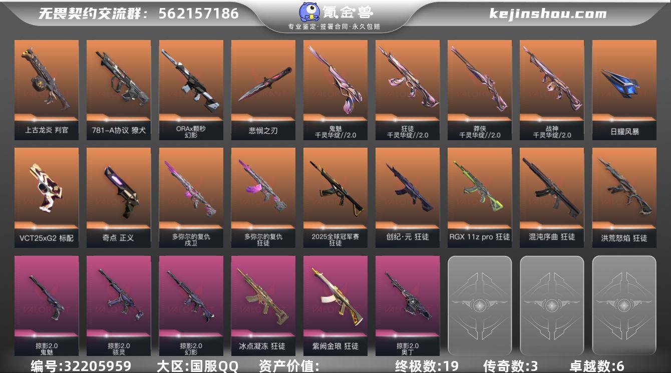 【PTWW3000】终极*19/传奇*3/卓越*6/皮肤*62/等级*60/段位:黄金/无畏契约季前邀请赛套装/千灵华绽//2.0 套装/掠影2.0套装/幻棱/炼狱/暮蝶/壹决/铁臂/捷风/雷兹/幽影/不死鸟/贤者/猎枭/零/芮娜/尚勃勒/霓虹/斯凯/夜露/K/O/盖可/黑梦/近战武器-碎心裂刃/无畏契约季前邀请赛 悲悯之刃/流风回雪/影钩/黑波之刃/日耀风暴/2025全球冠军赛 狂徒/狂徒-洪荒怒焰/狂徒-混沌序曲/狂徒-创·纪元/狂徒-RGX 11z pro/多弥尔的复仇 狂徒/狂徒-千灵华绽//2.0/狂徒-冰点凝冻/狂徒-紫阙金琅/幻影-ORAx颗秒/幻影-掠影2.0/多弥尔的复仇 戍卫/獠犬-781-A协议/莽侠-千灵华绽//2.0/战神-千灵华绽//2.0/奥丁-掠影2.0/判官-上古龙炎/骇灵-掠影2.0/标配-VCT25xG2/正义-奇点/鬼魅-千灵华绽//2.0/鬼魅-掠影2.0/欢迎来到底城 卡面/南瓜盛典 卡面/树懒大作战 卡面/无畏契约GO!第一卷:芮娜 卡面/无畏契约GO!第一卷:零 卡面/无垠星环 卡面/《双城之战》金克丝 卡面/钢锁vs盖可 卡面/代号红色 卡面/新兵报到 卡面/V契约 卡面/无畏契约 卡面/都算到了 喷漆/VCT x G2 喷漆/买装还是存钱 喷漆/红鳞 喷漆/松叶 喷漆/放下武器 喷漆/胜利属于无畏契约 喷漆/GLHF 喷漆/无畏契约 喷漆/无畏契约GO!第一卷 芮娜 挂饰/动力机箱 挂饰/VCTxG2挂饰/天外飞客 挂饰/无畏契约 纪念币 挂饰