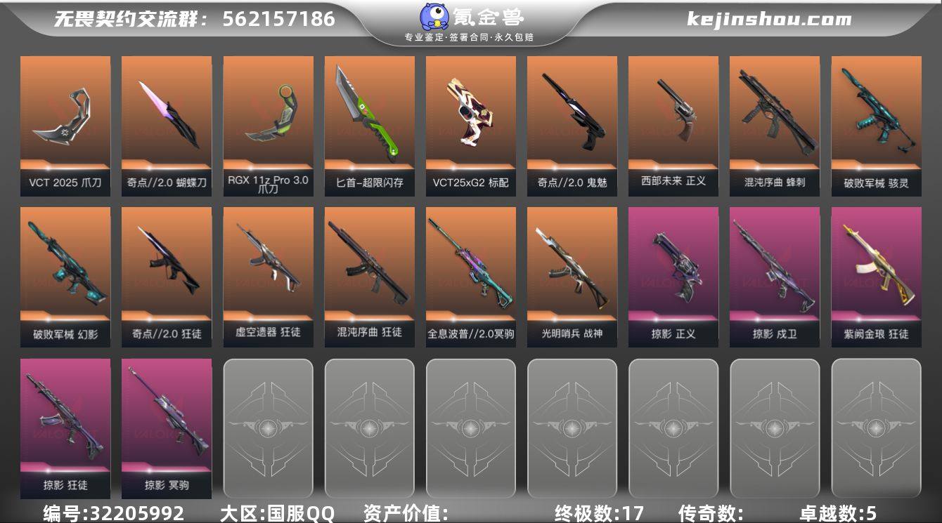 【PTWW3111】终极*17/卓越*5/皮肤*61/等级*135/段位:黄金/VCT 2025赛季礼包/奇点//2.0套装/掠影套装/幻棱/炼狱/维斯/暮蝶/钛狐/壹决/铁臂/捷风/雷兹/幽影/不死鸟/贤者/猎枭/蝰蛇/零/芮娜/奇乐/尚勃勒/霓虹/斯凯/夜露/星礈/K/O/海神/盖可/黑梦/钢锁/蝴蝶刀-奇点//2.0/VCT 2025 爪刀/爪刀-RGX 11z Pro 3.0/匕首-超限闪存/天御刀/影刃/狂徒-混沌序曲/狂徒-奇点//2.0/狂徒-虚空遗器/狂徒-掠影/狂徒-紫阙金琅/幻影-破败军械/幻影-超限闪存/幻影-神圣领域/戍卫-掠影/戍卫-浮光跃金/戍卫-逆冲蛮牛/戍卫-战术熊与伙伴们/獠犬-模拟赫兹/獠犬-逆冲蛮牛/冥驹-全息波普//2.0/冥驹-掠影/冥驹-荒土机兵/冥驹-模拟赫兹/飞将-战术熊与伙伴们/莽侠-超限闪存/莽侠-纤云弄巧/莽侠-月球哨兵/战神-光明哨兵/战神-神圣领域/战神-浮光跃金/奥丁-流星兵团/奥丁-纳米打击/判官-纳米打击x/雄鹿-模拟赫兹/雄鹿-逆冲蛮牛/雄鹿-月球哨兵/骇灵-破败军械/骇灵-荒土机兵/骇灵-流星兵团/骇灵-浮光跃金/骇灵-星云暗涌/蜂刺-混沌序曲/蜂刺-超限闪存/蜂刺-纤云弄巧/蜂刺-星云暗涌/标配-荒土机兵/标配-浮光跃金/标配-战术熊与伙伴们/标配-VCT25xG2/正义-西部未来/正义-掠影/正义-超限闪存/正义-月球哨兵/鬼魅-奇点//2.0/鬼魅-模拟赫兹/狂怒-神圣领域/狂怒-逆冲蛮牛/狂怒-战术熊与伙伴们/短炮-纤云弄巧/纳米打击 卡面/抑制技术 卡面/激斗汉堡 卡面/瓦娃脸雪糕 P2 卡面/荒土机兵 卡面/银弹猎手 卡面/《双城之战》拥抱 卡面/精灵大战 卡面/欢迎来到底城 卡面/南瓜盛典 卡面/唱片的故事 卡面/钢弓与箭弦 卡面/排除故障 卡面/奇点//2.0 卡面/战术桌游 卡面/悠享食光 卡面/修车达人 卡面/模拟赫兹 卡面/浮光跃金 卡面/超限闪存 卡面/维斯工牌 卡面/正义的化身 卡面/时间到 卡面/最高舞台 卡面/声感陷阱设计图 卡面/霓帧牛蛙 卡面/梦幻奶茶 卡面/暮蝶工牌 卡面/...
