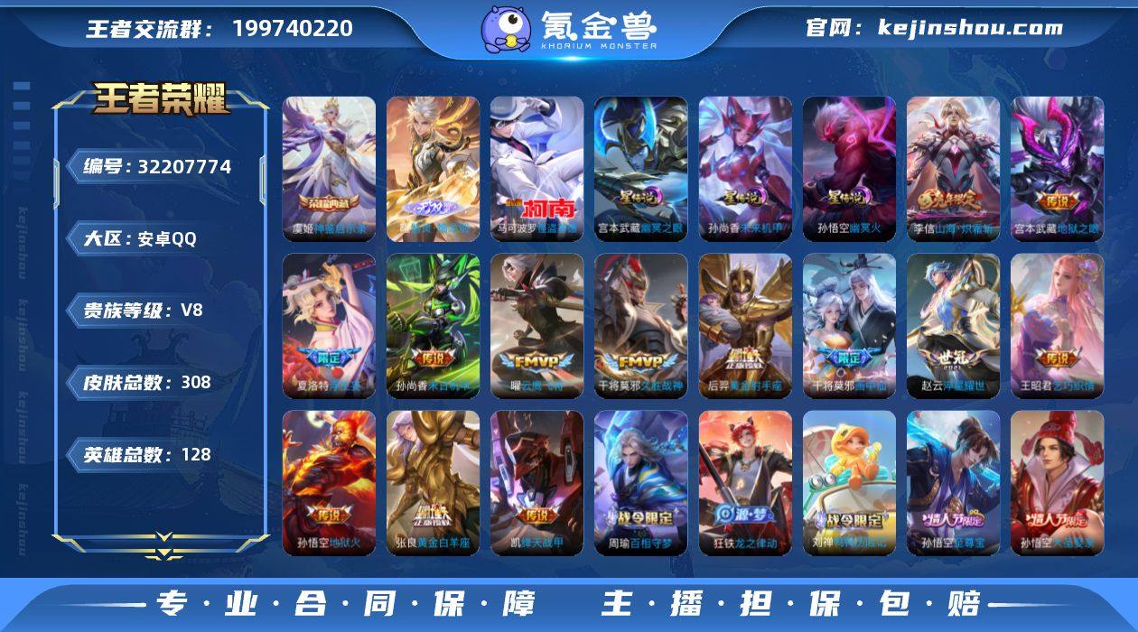 录·器灵螭龙剑·基德·白虎志·浮生妄·武圣·愿照九州拓·愿照岁时盈·山海炽霜斩·诗剑行·凤求凰·至尊宝·可二次】w15247-安卓Q-128英雄-308皮肤-19王者印记-180铭文-贵族积分6w【贵族8】【1典藏·1无双·1珍品·3星传说·22传说·259天幕·8按键】【因赛季更新游戏段付以上号为准!】 【荣耀典藏】:虞姬神鉴启示录 【无双皮肤】:曜器灵螭龙剑 【珍品传说】:马可波罗怪盗基德 【星元皮肤】:孙尚香未来机甲,宫本武藏幽冥之眼,孙悟空幽冥火 【传说皮肤】:澜愿照九州拓,虞姬愿照岁时盈,桑启鸣野蒿,夏洛特浮生妄,干将莫邪画中仙,孙悟空齐天大圣,李信山海炽霜斩,李白诗剑行,赵云淬星耀世,王昭君乞巧织情,铠绛天战甲,虞姬启明星使,关羽武圣,曜云鹰飞将,张良黄金白羊座,干将莫邪久胜战神,百里玄策白虎志,后羿黄金射手座,李白凤求凰,孙尚香末日机甲,宫本武藏地狱之眼,孙悟空地狱火 【限定皮肤】:白起狰,姜子牙天穹之誓,杨戬破阵退雄兵,狄仁杰阴阳师,虞姬凯尔特女王,赵云皇家上将,孙尚香蔷薇恋人,高渐离死亡摇滚,高渐离玩趣恶龙,阿轲迷踪丽影,孙膑妖精王,扁鹊炼金王,芈月重明,周瑜赤莲之焰,元歌无心,夏侯惇朔风刀,甄姬落雪兰心,曹操烛龙,典韦穷奇,典韦蓝屏警告,马可波罗暗影游猎,马可波罗山海玄木吟,狄仁杰魔术师,项羽海滩派对,老夫子醍醐杖,关羽武圣,刘邦夺宝奇兵,韩信飞衡,兰陵王驯魔猎人,孙悟空至尊宝,孙悟空大圣娶亲,孙悟空齐天大圣,牛魔御旌,李元芳银河之约,李元芳云中旅人,虞姬启明星使,钟馗驱傩正仪,干将莫邪画中仙,雅典娜单词大作战,雅典娜黎明之约,蔡文姬繁星吟游,鬼谷子原初探秘者,百里玄策白虎志,百里玄策原初追逐者,弈星混沌棋,梦奇顽趣,沈梦溪星空之诺,明世隐疑决卦,裴擒虎李小龙,裴擒虎擒涛扼浪,狂铁御狮,米莱狄御霄,李信山海炽霜斩,盾...