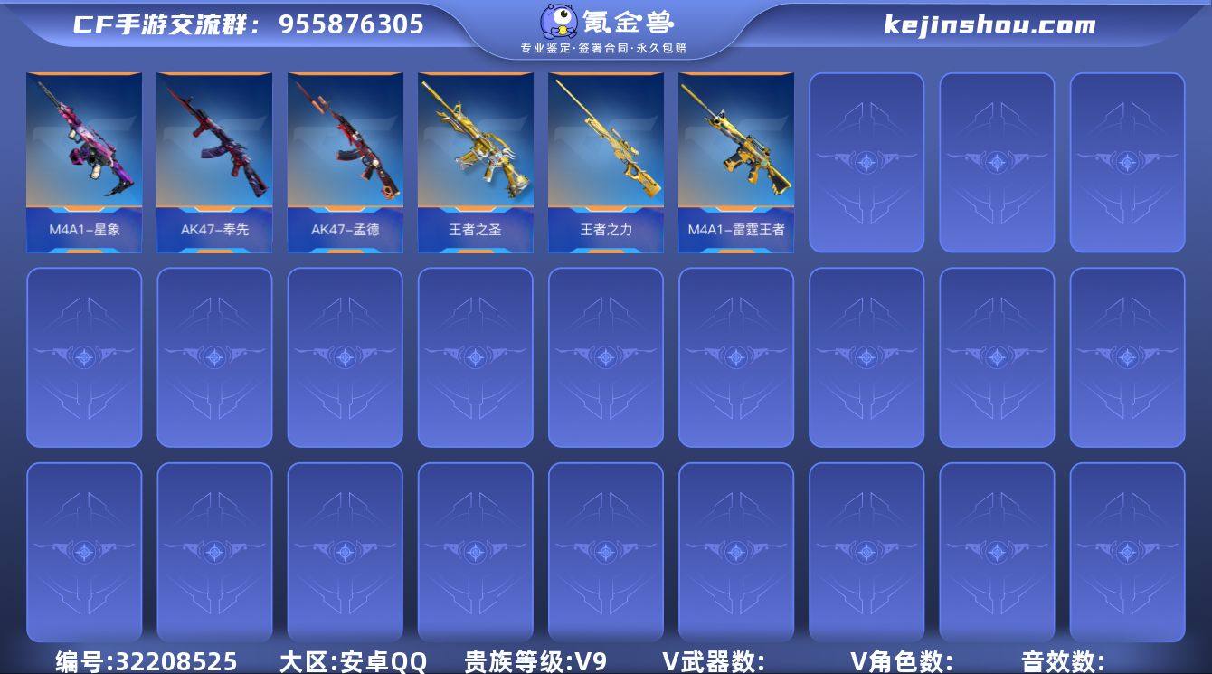 苹果V9 8至尊 16英雄角色数-360英雄武器数 【王者系列】:王者之翼,王者之刺,王者之击,王者之轮,王者之势,王者之影*2,王者之光,王者之怒,王者之魄,王者之心,王者之神,王者之锋,王者之迹,王者之蝶,王者之狱,王者之魂,王者之啸,王者之电*3,王者之烈*2,M12S-雷霆王者,王者之尊 【热门武器】:81式-光明之神,SCAR-文远,AK47-孟德,AK47-奉先,AK47-常胜,M4A1-威侯,M4A1-星象,AK47-游骑兵,M4A1-游骑兵,M200-幻神,AWM-妙才,AWM-游骑兵,黑龙魂,81式-阿波罗,COP 357-星象 TD2601218 【角色】:审判者,萝拉,葵,幽灵刀锋-觉醒,樱*2,香香,英雄兰,关小雨*2,蝴蝶,云悠悠,晴雅,职场灵狐-赛事经理,雅典娜,炽天使-X 【英雄武器】:AK47-无影*3,AK47-火麒麟,AK47-麒麟,AK47-黑武士觉醒*2,AK47-游骑兵,AK47-冰魂,AK47-常胜,AK47-英朗,AK47-机械迷城,AK47-孟德,AK47-幸运日觉醒,AK47-沙漠郡主-二觉,AK47-燎天净火*2,AK47-奉先,AK47-血武士*2,AK47-木兰,M4A1-雷神*4,M4A1-黑骑士,M4A1-黑龙,M4A1-死神*3,M4A1-玫瑰精灵,M4A1-天使,M4A1-游骑兵,M4A1-君威GS,M4A1-卧龙,M4A1-星象,M4A1-樱龙·一觉,M4A1-威侯,M4A1-龙血,M4A1-机械迷城,M4A1-海骑士,M4A1-堕天神,M4A1-心动次元觉醒,M4A1-运输船,M4A1-猎神,M4A1-千变,M4A1-太白诗仙,SCAR-幽暗骑士*2,SCAR-幽暗骑士觉醒,SCAR-文远,SCAR Light-白虎,SCAR-探星者*2,SCAR-守护者觉醒,SCAR-印刷术,剑齿虎,AN94-超新星,剑齿虎-炫彩,AN94-卷帘大将军,AN94-赳赳秦师,9A91-死神,9A91-天神,M14EBR-天神,M14EBR-拂影,M14EBR-葫芦山庄,M16-恶魔,AK12-天启,QBZ03-湮灭,QBZ03-金色蔷薇,QBZ03-死神*2,QBZ03-玉面羞花,81式-光明之神,QBZ19-天使,G36-李星云,MK47-云舞,QBZ191-封神榜,AWM-天龙,...
