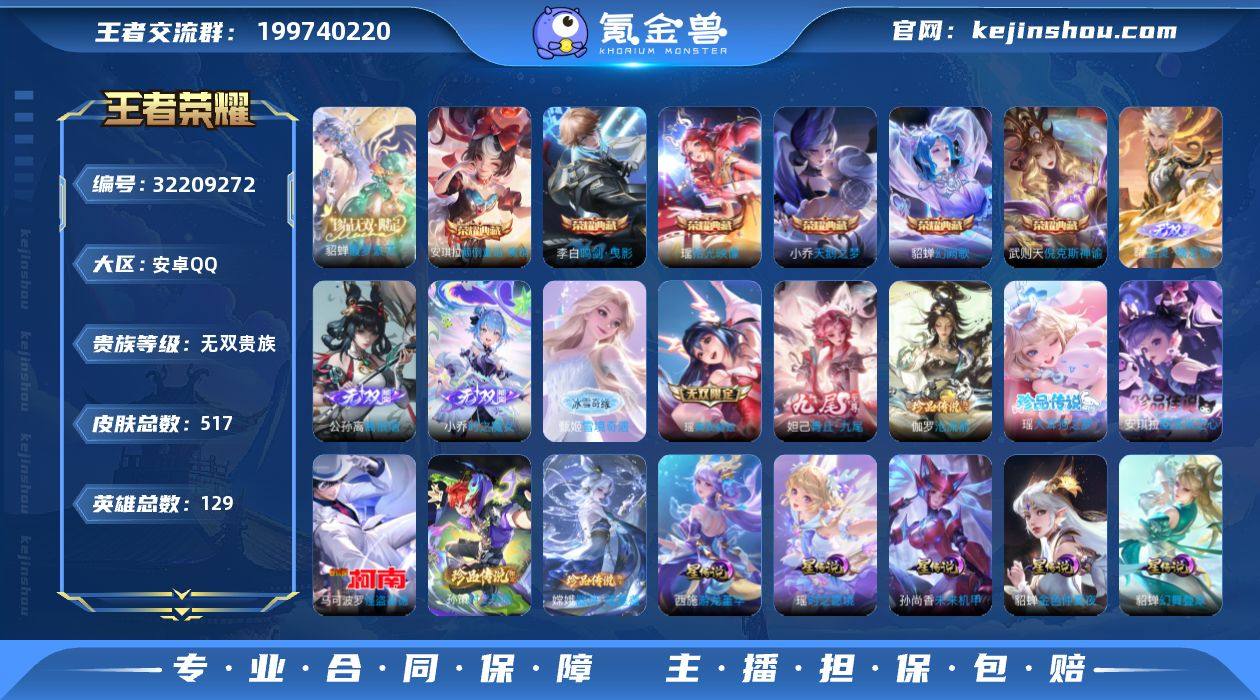 可换绑【无双V11精品女号·流光积分10万·貂蝉全皮·小乔全皮·瑶全皮·蔡文姬全皮·马年全套·【连体和平精英7粉5特效枪多裙子】神骥仙使主页装扮·安琪拉瑶貂蝉小乔7典藏含武则天英雄·妲己瑶小乔公孙离甄姬6无双·紫瑶·挚爱童话天幕·Hello Kitty天幕·财神纳福天幕·多传说限定妹子号·贵族积分30万】禁止排行榜到2026.6.13 24按键,7星传说,3天幕,90戳戳,17王者印记,五级铭文180,可二次KK9539,安卓Q-V11-517皮肤-6典藏皮肤-1典藏英雄-1珍品无双-6无双-6珍品传说-73传说-165史诗【英雄全皮】:小乔全皮,刘禅全皮,貂蝉全皮,刘邦全皮,孙权全皮,朵莉亚全皮,蔡文姬全皮,瑶全皮,嫦娥全皮,敖隐全皮,海月全皮,蒙恬全皮,桑启全皮,夏洛特全皮,司空震全皮,金蝉全皮,赵怀真全皮,戈娅全皮,空空儿全皮,影全皮,海诺全皮,少司缘全皮【荣耀典藏】:武则天英雄,武则天倪克斯神谕,小乔天鹅之梦,李白鸣剑曳影,貂蝉幻阙歌,瑶拾光映像,安琪拉颠倒童话魔镜【珍品无双】:貂蝉馥梦繁花【无双皮肤】:曜器灵螭龙剑,甄姬雪境奇遇,公孙离离恨烟,小乔时之魔女,瑶真我赫兹,妲己青丘九尾【珍品传说】:伽罗沧流箭,安琪拉酷洛米之心,瑶大耳狗之梦,嫦娥器灵落星盏,孙策时之奇旅,马可波罗怪盗基德【天幕】:挚爱童话天幕,Hello Kitty天幕,财神纳福天幕【星元皮肤】:貂蝉金色仲夏夜,武则天幻海之心,孙尚香未来机甲,瑶时之愿境,貂蝉幻舞叠翠,西施游龙堇华,大乔沐霞之诺【传说皮肤】:云缨神骥越千峰,关羽神骥镇沧海,朵莉亚神骥鸣幻洲,狄仁杰神骥赴朔漠,貂蝉神骥聚万邦,马超神骥逐星野,李元芳星君娄金,王昭君长夜焕生,杨戬纵目迁山,公孙离云诺千山,西施续相思,杨玉环星之鸣奏,后羿千劫归真,司空震愿照山河定,女娲愿照千秋盛,妲己愿照众生和,澜愿照九州拓,蔡文姬愿照福禄聚,虞姬愿照岁时...
