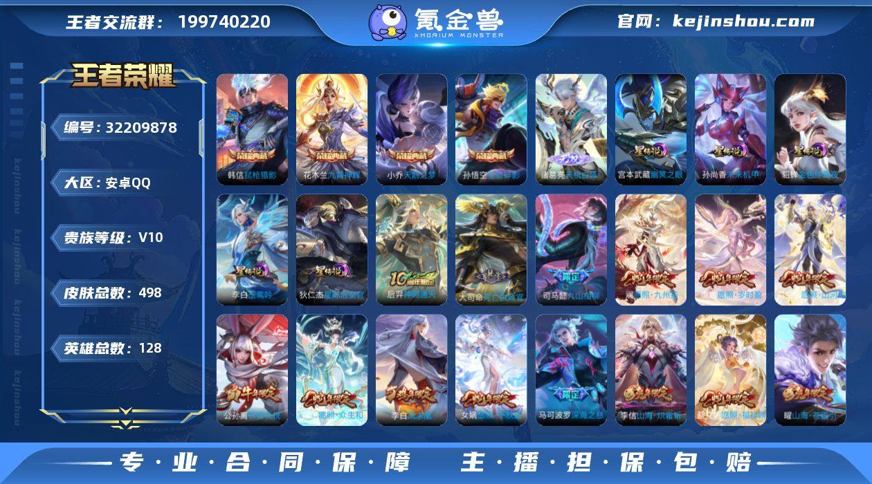 可换绑【捡漏V10精品号·梅西·4典藏·诸葛亮无双·蛇年全套·画中仙·女娲补天·兔年全套·五虎上将·85个按键·多传说限定质量号·贵族积分27.8万】85按键,5星传说,543戳戳,16王者印记,满级铭文,可二次CD18054,安卓Q-V10-498皮肤-4典藏皮肤-1无双-71传说-160史诗【英雄全皮】:嬴政全皮,司马懿全皮,孙权全皮,艾琳全皮,女娲全皮,狂铁全皮,蒙恬全皮,夏洛特全皮,司空震全皮,莱西奥全皮,影全皮【荣耀典藏】:孙悟空全息碎影,小乔天鹅之梦,花木兰九霄神辉,韩信弑枪猎影【无双皮肤】:诸葛亮天机白泽【星元皮肤】:貂蝉金色仲夏夜,宫本武藏幽冥之眼,孙尚香未来机甲,狄仁杰星际治安官,李白玉鸾吟【传说皮肤】:后羿神树通天,大司命死亡执政官,司马懿九山相柳,杨玉环星之鸣奏,司空震愿照山河定,女娲愿照千秋盛,妲己愿照众生和,澜愿照九州拓,蔡文姬愿照福禄聚,虞姬愿照岁时盈,云缨幻光神枪,嬴政玄雷天君,桑启鸣野蒿,铠冥王哈迪斯,典韦战鼓燎原,澜逐花归海,艾琳觅芳踪,露娜霜月吟,大乔时之奇旅,鲁班七号时之奇旅,兰陵王影龙天霄,吕布遇见神鼓,马可波罗妄想实况,张飞百相守梦,公孙离记忆之芯,夏洛特浮生妄,干将莫邪画中仙,伽罗炽翼辉光,孙悟空齐天大圣,小乔山海琳琅生,曜山海苍雷引,李信山海炽霜斩,吕布怒海麟威,李白诗剑行,王昭君星穹之声,孙尚香音你闪耀,马可波罗深海之息,马超无双飞将,露娜启示之音,女娲补天,孙策末日机甲,鲁班七号寅虎瑞焰,孙尚香异界灵契,赵云淬星耀世,周瑜音你心动,李元芳飞鸢探春,公孙离祈雪灵祝,铠绛天战甲,镜炽阳神光,虞姬启明星使,孙悟空零号赤焰,关羽武圣,曜云鹰飞将,李信一念神魔,刘备时之恋人,貂蝉猫影幻舞,张良黄金白羊座,干将莫邪久胜战神,虞姬云霓雀翎,达摩黄金狮子座,花木兰冠军飞将,梦奇胖达荣荣,后羿黄金射...