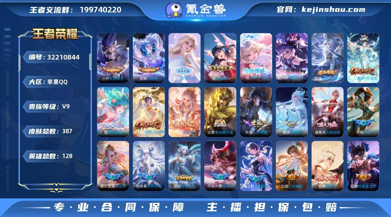 128英雄-387皮肤-苹果QQ/高质量女号/中辅英雄都有皮肤/差两千多v10/3天幕/39按键/最强王者/387皮肤/128英雄/2典藏/2无双/3珍品传说/29传说/130史诗/9稀有英雄 【3 珍品传说】酷洛米之心 安琪拉,大耳狗之梦 瑶,器灵·落星盏 嫦娥, 【2 典藏皮肤】天鹅之梦 小乔,幻阙歌 貂蝉, 【2 无双皮肤】雪境奇遇 甄姬,真我赫兹 瑶, 【29 传说皮肤】星穹之声 王昭君,启明星使 虞姬,前尘镜 娜可露露,时之祈愿 瑶,补天 女娲,游龙清影 西施,遇见胡旋 貂蝉,猫影幻舞 貂蝉,仲夏夜之梦 貂蝉,武陵仙君 诸葛亮,启示之音 露娜,霜月吟 露娜,乞巧织情 王昭君,黄金狮子座 达摩,绯月行 不知火舞,异界灵契 孙尚香,一念神魔 李信,音你心动 小乔,挚爱花嫁 大乔,妄想奇谈 上官婉儿,音你闪耀 孙尚香,星之鸣奏 杨玉环,玄雷天君 嬴政,愿照·众生和 妲己,愿照·福禄聚 蔡文姬,幻光神枪 云缨,曦玄引 貂蝉,映山客 王昭君,续相思 西施, 【130 史诗皮肤】时之奇旅 安琪拉,电玩小子 鲁班七号,紫霞仙子 露娜,百解令 蒙犽,时之奇旅 妲己,高山流水 庄周,匿光追影者 镜,奇遇舞章 艾琳,唐三藏 金蝉,暗渊魔法 司马懿,匿光决锋者 夏侯惇,乘龙·忆丹青 大乔,燃音魔法 高渐离,白鹤梁神女 大乔,猫狗日记 大乔,妄想食味 姬小满,德古拉伯爵 刘邦,心灵战警 亚瑟,五谷丰年 鬼谷子,诗语江南 西施,巫礼祀神 少司缘,鬼剑武藏 宫本武藏,迷踪丽影 阿轲,幻珠鲛人 朵莉亚,星夜王子 白起,寅虎·心曲 杨玉环,无限星赏官 公孙离,千筹问战 张良,线条小狗 周瑜,玉兔公主 公孙离,遇见飞天 杨玉环,摇滚巨星 嬴政,电玩高手 狂铁,修罗 橘右京,拒霜思 嫦娥,魅力维加斯 妲己,黄金分割率 诸葛亮,热情桑巴 妲己,滕王阁序 弈星,乐园奇幻夜 钟馗,如梦令 嫦娥,偶像歌手 王昭君,霸王别姬 虞姬,女仆咖啡 妲己,逐梦之音 貂蝉,白蛇 大乔,晚萤 娜可露露,遇见神鹿 瑶,舞动绿茵 蔡文姬,繁星吟游 蔡文姬,暗夜贵...