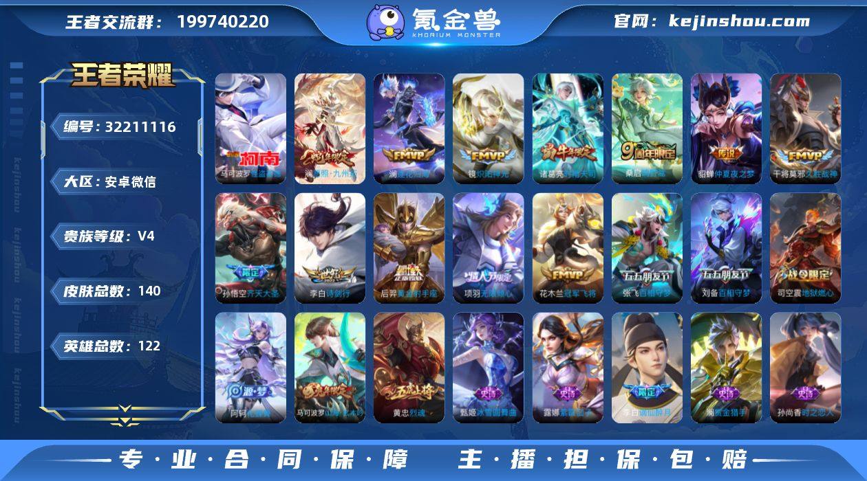 TRWX303-可二次-马可波罗怪盗基德-安卓WX-V7-永恒钻石III段位-121英雄-140皮肤-1珍品传说-13传说-44史诗 【珍品传说】:马可波罗怪盗基德 【传说皮肤】:澜愿照九州拓,桑启鸣野蒿,澜逐花归海,张飞百相守梦,项羽无限倾心,孙悟空齐天大圣,李白诗剑行,诸葛亮时雨天司,镜炽阳神光,干将莫邪久胜战神,花木兰冠军飞将,后羿黄金射手座,貂蝉仲夏夜之梦 【限定皮肤】:姜子牙天穹之誓,李白谪仙醉月,狄仁杰阴阳师,赵云皇家上将,嬴政白昼王子,庄周云端筑梦师,高渐离玩趣恶龙,扁鹊奇幻香踪,马可波罗山海玄木吟,狄仁杰魔术师,狄仁杰万华元夜,项羽海滩派对,项羽无限倾心,老夫子醍醐杖,关羽百相守梦,孙悟空齐天大圣,刘备百相守梦,张飞百相守梦,李元芳云中旅人,杨戬潮玩骑兵,雅典娜黎明之约,诸葛亮时雨天司,黄忠烈魂,裴擒虎擒涛扼浪,嫦娥暖冬兔眠,鲁班大师探海日志,桑启海盐诗旅,暃星界游侠,艾琳流音漫舞,司空震地狱燃心,阿古朵江河有灵,张良古海寻踪,蒙恬荣光圣徽,高渐离燃音魔法,妲己灵卜魔法,鬼谷子天穹祈灯,沈梦溪龙舞盛年,刘邦剑破天穹,程咬金群星魔术团,周瑜熔金海岸 【年限皮肤】:诸葛亮时雨天司,黄忠烈魂,马可波罗山海玄木吟 【赛季限定】:狄仁杰万华元夜,老夫子醍醐杖,张良古海寻踪,李元芳云中旅人,雅典娜黎明之约,裴擒虎擒涛扼浪,鲁班大师探海日志,桑启海盐诗旅,鬼谷子天穹祈灯,蒙恬荣光圣徽,刘邦剑破天穹,姜子牙天穹之誓 【战令限定】:嬴政白昼王子,扁鹊奇幻香踪,艾琳流音漫舞,杨戬潮玩骑兵,嫦娥暖冬兔眠,司空震地狱燃心,暃星界游侠,高渐离燃音魔法,妲己灵卜魔法 【史诗皮肤】:露娜紫霞仙子,赵云皇家上将,貂蝉圣诞恋歌,甄姬冰雪圆舞曲,王昭君偶像歌手,狄仁杰魔术师,宫本武藏鬼剑武藏,孙尚香水果甜心,墨子金属风暴,吕布圣诞狂欢,...