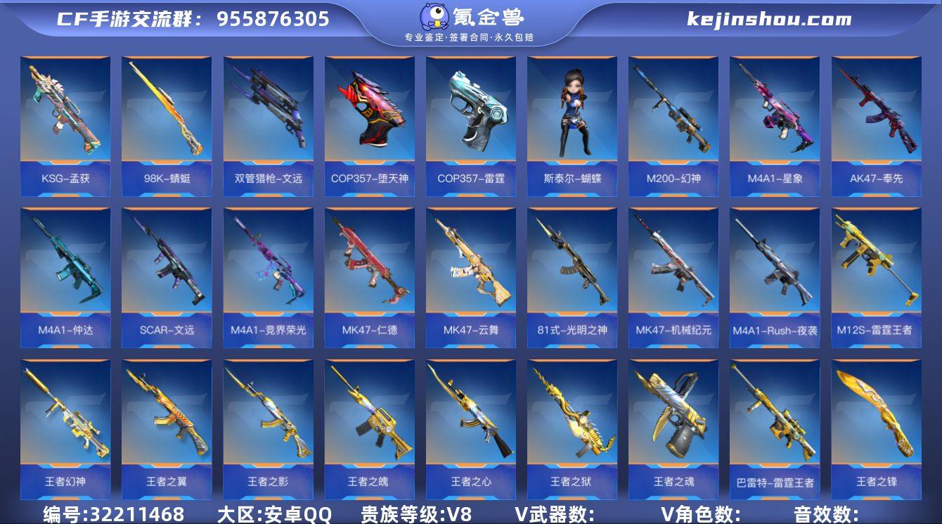 66502|【安卓QQ】 角色等级:巅峰大元首 【角色】关小雨、乔月、瞳、樱、职场灵狐-赛事经理、零-新生、步练师、月神-X、夏日灵狐-X、炽天使-X、龙妹-X、祝融夫人、钟小魁 【武器】王者之霆、王者之影、王者【安卓QQ】 角色等级:巅峰大元首 【角色】关小雨、乔月、瞳、樱、职场灵狐-赛事经理、零-新生、步练师、月神-X、夏日灵狐-X、炽天使-X、龙妹-X、祝融夫人、钟小魁 【武器】王者之霆、王者之影、王者之心、王者之神、王者之狱、M4A1-雷霆王者、王者之魂、COP 357-雷霆王者、王者之锋、AK47-元让、M4A1-仲达、M200-权、KSG-孟获、CZS2-仲康、CZ75-策、双管猎枪-文远、柯尔特-仲达、双持GLOCK18-本初、气勇胆烈戟、思召剑、M200-幻神、AWM-游骑兵、AWM-天龙、巴雷特-极光、巴雷特-毁灭-审判者、98K-星神、98K-蜻蜓、98K-黑骑士、M4A1-雷神、M4A1-太白诗仙、M4A1-游骑兵、M4A1-神工天巧、AA12-竞界荣光、CBJ-MS-毒蜂、汤姆逊-烈龙、沙鹰-修罗-铁骑、COP 357-雷神、COP 357-堕天神、USP-太白诗仙、MK23-机械纪元、MK23-双脊龙、蝴蝶刀-天神、尼泊尔-雷霆、墨刃-幻神、太白诗仙扇、AK47-无影-葵、迷你饕餮、迷你究极泰坦、M4A1-死神、亡命之徒-鬼魅双生、加特林-堡垒、毁灭征服者-超越Max、地狱烈炎、双持沙鹰-元让、G3A3-衍神兵、MK47-金角巨兽、HK417-炎龙铠甲、QBZ191-帝皇铠甲、QBZ03-天罚、M12S-天公、KSG-钟馗觉醒、AWM-大湾溢彩、VSK-94-金蚀、M1887-幽冥玄喵觉醒、改装GLOCK-魔杀族、烈焰弓、双管猎枪-极光盾、MAC-10-孟获、QSZ92-冰魂觉醒、血影战刀、末日裁决觉醒、烈焰刀、蛮神巨斧、匕首-冰魂觉醒、铁锹-未来战士、81式-光明之神、AK47-火麒麟、AK12-天启、王者之尊、穷奇铁扇、激昂霸王枪、燃烧弹-游骑兵、啖睛矢、炽芒蝶刃、M4A1-游骑兵-寒霜、烟雾弹-雷霆王者、闪光弹-雷霆王者、M4A1-仲达-过载、AWM...
