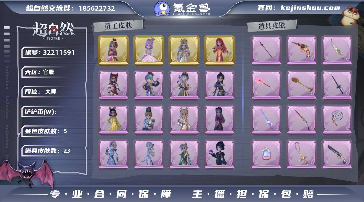 [16731372]5金皮 18紫皮 私藏的银河,金戈玄铜,末章心跳,罪棘,赞萌波板糖,幻宠之门,星光的裁决,祝祷词,花落精绝,小狗蛇点点鞭,最后的独角兽,永眠曲,龙鳞,云端梦想计划,珍珠芭乐莓莓,飞天绫,飞花令,鸣沙鼓,新星时代,碧络琅环,桃心,happy猫,金丝眼镜道具 KT猫摇,旋转舞,山楂树之舞,刀马舞,鸳鸯戏,七仔摇,知世摇,带你逃跑吧,要糖,举牌,luvaboy,鞭子舞,律动迪斯科,胜利之舞,抬手,星奇摇,舞台中心,心跳摇,小雨摇动作 10级梦居 大师 【服装】太空鲨头套,雪墩墩头套,渡鸦公爵,仙锋小姐,樱桃奶油布丁,甜梦派对,潮汐小海兔,莓果陷阱,精致露比头套,异色序曲,火爆了头套,九色祥鹿,小财神豚豚头套,烛光纪念,除妖小师妹,血色中的玛丽,黑月挽歌,哈士奇头套,卑微头套,炙热烧烤,呆滞头套,烈焰红唇头套,嘻嘻头套,情公主,白光莹,水王子,鳄霸天头套,泽引山海,素影瑶光,青云逸歌,丝缕哀歌,灵昭鹿鸣,王子与骑士,镜花辞,圣光之谕,遗失的童话,滑稽头套,鱼头怪头套,迷途僵宝,绒团小狐狸,绣春逍影,呱呱雨衣,钗头凤,未竟乐园,蝶恋花,面具马头套,在逃小新娘,毛球夹子,云梦之星,小狗蛇点点头套,驼半仙头套,萨卡班甲鱼头套 【道具】私藏的银河,金戈玄铜,末章心跳,罪棘,赞萌波板糖,幻宠之门,星光的裁决,祝祷词,花落精绝,小狗蛇点点鞭,最后的独角兽,永眠曲,龙鳞,云端梦想计划,珍珠芭乐莓莓,飞天绫,飞花令,鸣沙鼓,新星时代,碧络琅环,桃心,happy猫,金丝眼镜 【动作】KT猫摇,旋转舞,山楂树之舞,刀马舞,鸳鸯戏,七仔摇,知世摇,带你逃跑吧,要糖,举牌,luvaboy,鞭子舞,律动迪斯科,胜利之舞,抬手,星奇摇,舞台中心,心跳摇,小雨摇