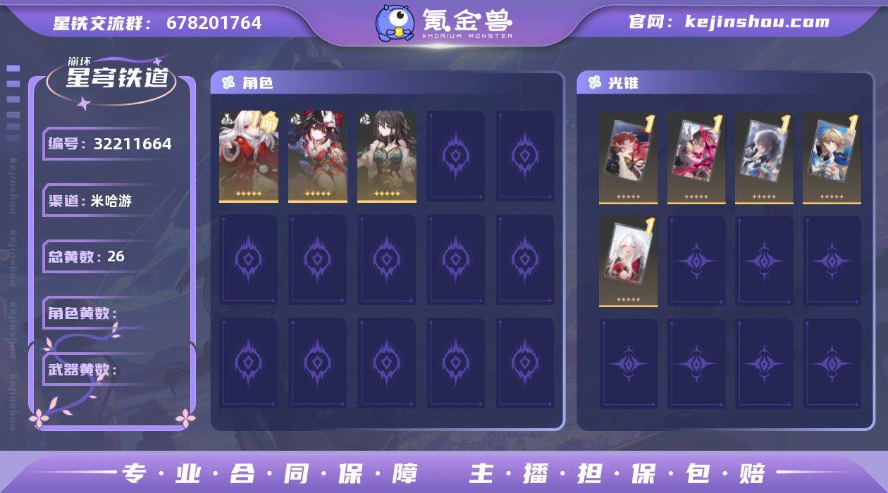 总黄数: 26 开拓等级: 66 开拓者性别: 男 1命金色角色: 1命克拉拉 精1武器: 精1制胜的瞬间,精1以世界之名,精1但战斗还未结束,精1无可取代的东西,精1银河铁道之夜 亮点: 【26】K296 等级:66/总黄数:26/男主角色黄数:10火花,爻光,长夜月,刻律德菈,花火,阮•梅,克拉拉,花花世界迷人眼,当她决定看见,致长夜的星光,但战斗还未结束,制胜的瞬间,银河铁道之夜,无可取代的东西,以世界之名,1命长夜月,1命克拉拉,0命火花,0命爻光,0命刻律德菈,0命花火,0命阮•梅,精1花花世界迷人眼,精1当她决定看见,精1致长夜的星光,精1但战斗还未结束,精1制胜的瞬间,精1无可取代的东西,精1银河铁道之夜,精1以世界之名