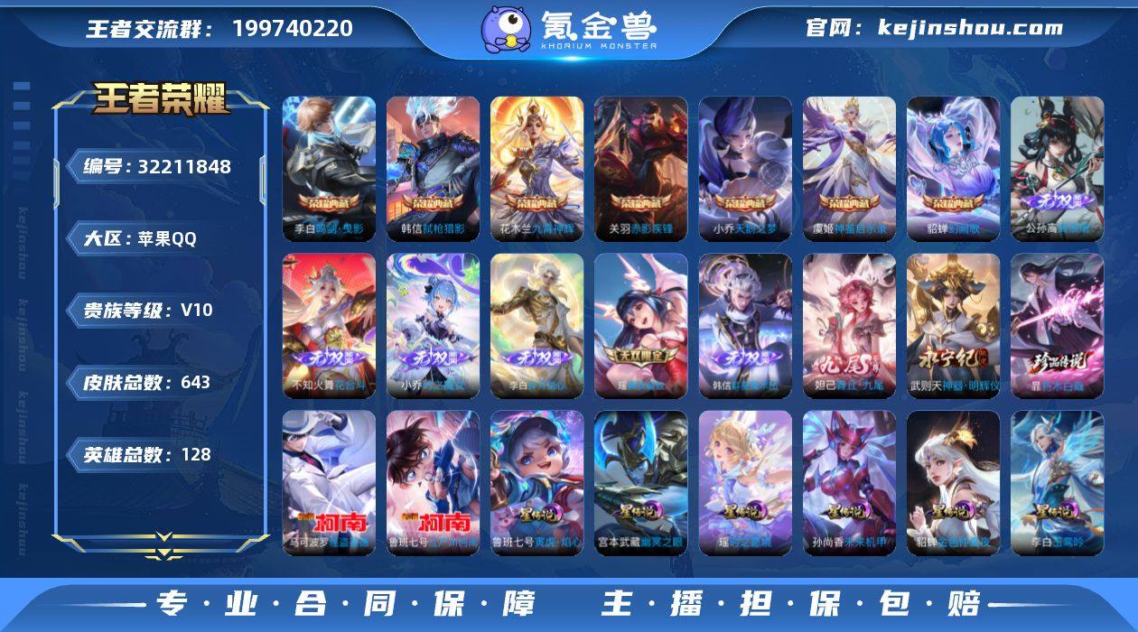 126英雄-643皮肤-V10-8典藏8无双3珍品传说110传说 打野39段 游走30段 8星传说 苍灵仙君 玉鸾吟 时之愿镜 寅虎焰心 幻海之心 幽冥之眼 未来机甲 金色仲夏夜【全皮英雄】 哪吒全皮 花木兰全皮 镜全皮 娜可露露全皮 暃全皮 关羽全皮 大乔全皮 王昭君全皮 李信全皮 不知火舞全皮 百里玄策全皮 吕布全皮 兰陵王全皮 姜子牙全皮 盾山全皮 狂铁全皮 刘邦全皮 鲁班大师全皮 东皇太一全皮 金蝉全皮 米莱狄全皮 李元芳全皮 夏洛特全皮 赵云全皮 艾琳全皮 猪八戒全皮 墨子全皮 影全皮 【典藏】 神鉴启示录 武则天 天鹅之梦 鸣剑曳影 九霄神辉 赤影疾锋 幻阙歌 弑枪猎影 【无双】 离恨烟 花合斗 群星魔术团韩信 时之魔女 碎月剑心 神器明辉仪 青丘九尾 真我赫兹瑶 【珍品传说】 朽木白哉 江户川柯南 怪盗基德 【传说】 心动手记朵莉亚 群星魔术团云中君 黄金天蝎座 金乌负日 落雪白狼 曦玄引吕布 曦玄引貂蝉 乘龙问璇玑 乘龙淬吴钩 乘龙铭钟鼎 战鼓燎原 逐花归海 觅芳踪 铠琥珀纪元 马超琥珀纪元 惊梅引 遇见神鼓 小动物乐团 凤求凰 万灵伏威 神树通天 纵目迁山 鸣野蒿 霜北刀 映山客 鹤羽星尊 至美化雀舞 白虎志 启明星使 时雨天司 祈雪灵祝 寅虎瑞焰 寅虎赤拳 影龙天霄 山海苍雷引 山海琳琅生 山海炽霜斩 追逃游戏男 追逃游戏女 太华 冥王哈迪斯 武圣 李逍遥 枫霜尽 齐天大圣 遇见胡旋 默契交锋男 燃星之曲 画中仙 浮生妄 时之奇旅大乔 时之奇旅鲁班 无限倾心女 无限倾心男 永曜之星 天魔缭乱 武陵仙君 前尘镜 绯月行 炽翼辉光 星穹之声 深海之息 游龙清影 无尽星芒 时之祈愿女 异界灵契 启示之音 挚爱之约 挚爱花嫁 补天 永恒水手月亮 夜礼服假面 霜月吟 鹤归松栖女 妄想奇谈 妄想实况 灼幽烈阳 绛天战甲 淬星耀世 乞巧织情 音你闪耀 电玩雷克斯 记忆之芯 音你心动女 音你心动男 无双飞将 碎云 张飞百相守梦 神器狴犴令 怒...
