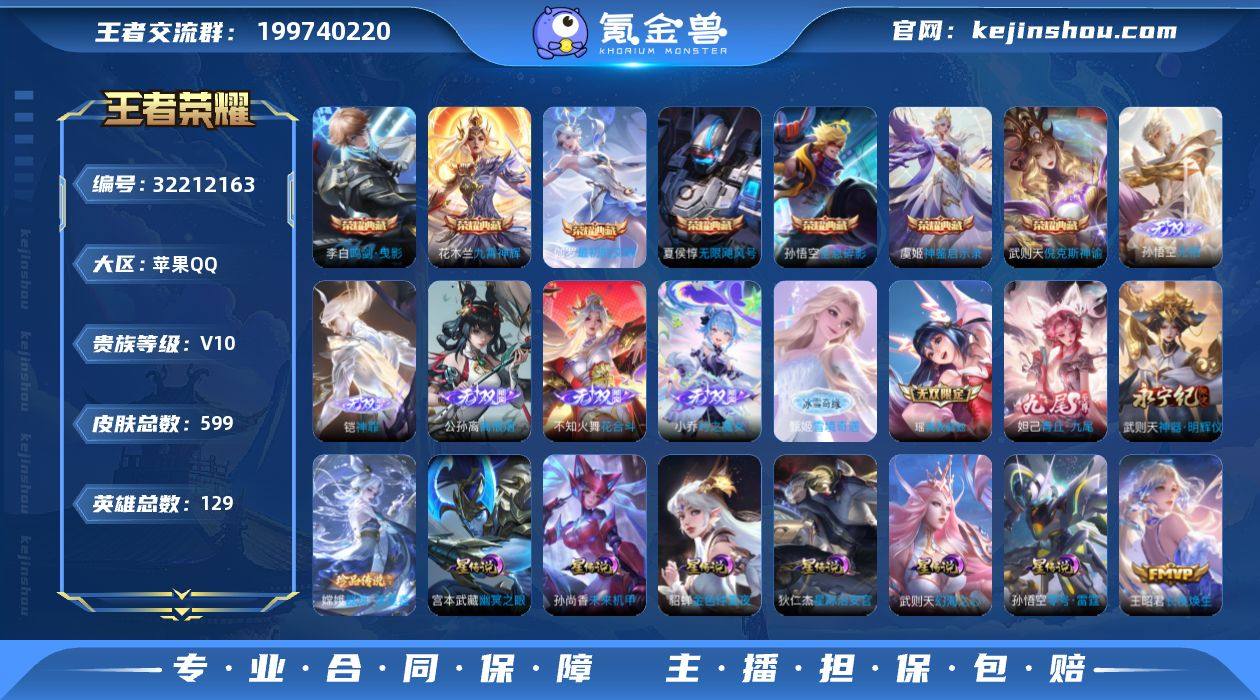 苹果Q-V10-永恒钻石II段位-129英雄-599皮肤-7典藏皮肤-1典藏英雄-9无双-1珍品传说-83传说-208史诗,中路37段,游走32 【英雄全皮】:墨子全皮,白起全皮,夏侯惇全皮,武则天全皮,姜子牙全皮,刘邦全皮,孙权全皮,不知火舞全皮,娜可露露全皮,橘右京全皮,孙悟空全皮,刘备全皮,杨玉环全皮,苍全皮,苏烈全皮,百里守约全皮,沈梦溪全皮,狂铁全皮,米莱狄全皮,盾山全皮,敖隐全皮,西施全皮,鲁班大师全皮,夏洛特全皮,司空震全皮,金蝉全皮,戈娅全皮,空空儿全皮,影全皮,海诺全皮 【荣耀典藏】:武则天英雄,孙悟空全息碎影,武则天倪克斯神谕,夏侯惇无限飓风号,李白鸣剑曳影,花木兰九霄神辉,虞姬神鉴启示录,伽罗最初的交响 【无双皮肤】:孙悟空无相,铠神罪,甄姬雪境奇遇,公孙离离恨烟,不知火舞花合斗,小乔时之魔女,瑶真我赫兹,妲己青丘九尾,武则天神器明辉仪 【珍品传说】:嫦娥器灵落星盏 【传说皮肤】:王昭君长夜焕生,杨戬纵目迁山,后羿神树通天,西施续相思,杨玉环星之鸣奏,司空震愿照山河定,女娲愿照千秋盛,妲己愿照众生和,澜愿照九州拓,蔡文姬愿照福禄聚,虞姬愿照岁时盈,云缨幻光神枪,嬴政玄雷天君,王昭君映山客,桑启鸣野蒿,庄周牧神诗旅,夏侯惇霜北刀,墨子黄金天蝎座,海月金乌负日,孙尚香乘龙问璇玑,赵云乘龙铭钟鼎,马超琥珀纪元,铠琥珀纪元,澜逐花归海,艾琳觅芳踪,甄姬至美化雀舞,兰陵王影龙天霄,宫本武藏惊梅引,东皇太一灼幽烈阳,张飞百相守梦,夏洛特浮生妄,孙悟空齐天大圣,小乔山海琳琅生,曜山海苍雷引,李信山海炽霜斩,吕布怒海麟威,不知火舞绯月行,王昭君星穹之声,百里守约碎云,橘右京枫霜尽,娜可露露前尘镜,孙尚香音你闪耀,马可波罗深海之息,马超无双飞将,大乔挚爱花嫁,孙策挚爱之约,蔡文姬花朝如约,孙策末日机甲,瑶时之祈...