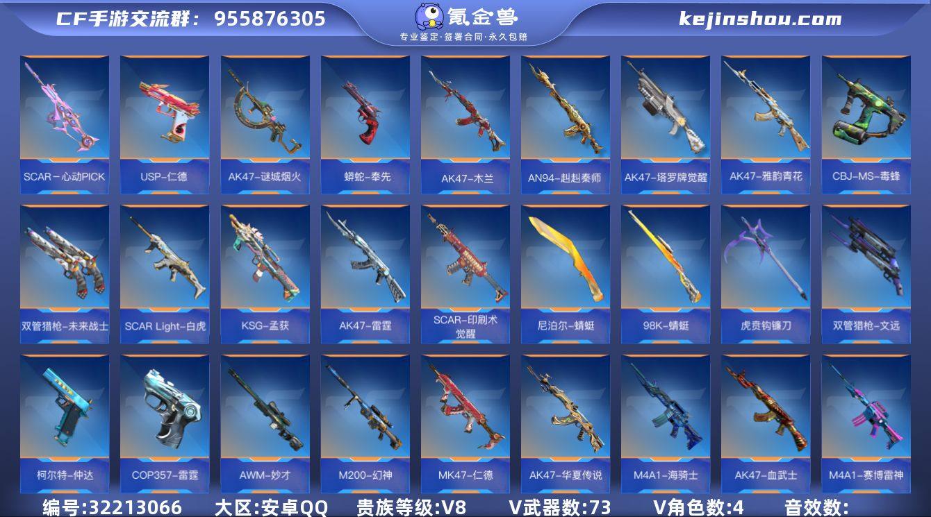 x2035 VIP8级,魄至尊,怒至尊,心至尊,王心,王影,王魄,冰皮AK雷霆王者,王魄-冠军珍藏,王势,王尊,王誉,冰皮王力,王者之力-炫金,冰皮王怒,王者之怒-炫金,冰皮王狱,王霆,白金王魂,王锋,AK奉先,过载M4仲达,AN盖,MK47仁德,过载AWM妙才,加特林-炼狱,CZS2仲康,KSG孟获,王心雷,王圣雷,王者之影烟雾弹,王者之影闪光弹,王者之翼烟雾弹,王者之翼闪光弹,步练师,祝融夫人,萝拉,瞳,樱,狙击枪线5最终消灭1消灭音效6;【王者武器】:王者之心,王者之影,王者之魄,AK47-雷霆王者,王者之魄-冠军珍藏,王者之势,王者之尊,王者之誉,王者之力,王者之怒,王者之狱,王者之霆,王者之魂,王者之锋,王者之心手雷,王者之圣手雷,王者之翼闪光弹,王者之影闪光弹,王者之心闪光弹,王者之圣闪光弹,王者之翼烟雾弹,王者之心烟雾弹,王者之影烟雾弹,王者之圣烟雾弹;【三国武器】:AK47-奉先,M4A1-仲达,AN94-盖,MK47-仁德,AWM-妙才,加特林-炼狱,CZS2-仲康,KSG-孟获,USP-仁德,蟒蛇-奉先,双持沙鹰-元让,双持GLOCK18-本初,左轮-卧龙觉醒,柯尔特-仲达,双管猎枪-文远,CZ75-策,雌雄双股剑,虎贲钩镰刀,气勇胆烈戟,穷奇铁扇,激昂霸王枪,方天画戟,啖睛矢,思召剑,铁锹-孟德;【热门武器】:AK47-火麒麟,AK47-黑武士觉醒,AK47-猩红传说,AK47-无影,AK47-幸运日,AK47-燎天净火,AK47-血武士,AK47-黑鲨,AK47-木兰,AK47-破空冰刃,AK47-华夏传说,AK47-心动次元,AK47-雷霆,AK47-塔罗牌觉醒,AK47-雅韵青花,AK47-谜城烟火,M4A1-黑龙,M4A1-黑骑士,M4A1-雷神,M4A1-龙血,M4A1-变色龙,M4A1-死神,M4A1-七色宝葫,M4A1-机械迷城,M4A1-海骑士,M4A1-赛博雷神,M4A1-哈迪斯,M4A1-破空冰刃,M4A1-猎神,M4A1-堕天神,M4A1-运输船,M4A1-夏清觉醒,M4A1-青龙,M4A1-铁胆虎...