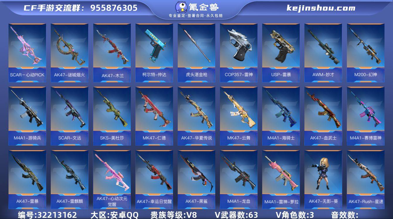 x2179 VIP8级,魄至尊,怒至尊,心至尊,M12S雷霆王者,王蝶,女团王魄,冰皮王武,王狱,王尊,王怒,冰皮王光,王者幻神,王锋,白金王魂,女团王魂,冰皮王势,王心,王影,CZS2仲康,M4星象,加特林-炼狱,过载AWM妙才,SCAR文远,过载M4仲达,烽火连城M4仲达,MK47仁德,女团王心雷,王者之势闪光弹,王者之竞烟雾弹,王者之竞闪光弹,王者之翼烟雾弹,王者之翼闪光弹,关小雨,雨墨,子涵,狙击枪线3消灭音效5;【王者武器】:M12S-雷霆王者,王者之蝶,王者之魄,王者之武,王者之狱,王者之尊,王者之怒,王者之光,王者幻神,王者之锋,王者之魂,王者之竞烟雾弹,王者之翼烟雾弹,王者之心烟雾弹,王者之势闪光弹,王者之竞闪光弹,王者之心闪光弹,王者之翼闪光弹,王者之势,王者之心,王者之影,王者之心手雷;【三国武器】:CZS2-仲康,虎头湛金枪,丈八蛇矛,铁锹-孟德,M4A1-星象,加特林-炼狱,AWM-妙才,柯尔特-仲达,沙鹰-孟德,气手枪-炼狱,SCAR-文远,穷奇铁扇,双持GLOCK18-本初,左轮-卧龙觉醒,双管猎枪-威侯,M4A1-仲达,MK47-仁德;【热门武器】:地狱火,KSG-极光,KSG-钟馗觉醒,贝雷塔-力拔山河,地狱烈炎,KSG-火力竞放觉醒,PP19野牛-造纸术,USP-雷暴,M1216-血月,USP-机械迷城,斯泰尔-幻兽,MK5-极光,双持斯泰尔-天使,王者之蝶,汤姆逊-烈龙,寒霜烈龙,刘易斯-星际方舟觉醒,刘易斯-血月,A180-地狱凤凰,CZS2-心动次元觉醒,QCW05-未来战士,AK47-木兰,AK47-雷暴,AK47-黑鲨,AK47-心动次元觉醒,AK47-华夏传说,AK47-血武士,AK47-雷麒麟,AK47-破空冰刃,末日裁决觉醒,百战巾帼枪,马来剑-耀金伯爵,唐刀-大唐荣耀,擎天觉醒,马来剑-毁灭,烈焰刀,唐刀-华夏传说,M4A1-黑骑士,M4A1-雷神,M4A1-游骑兵,M4A1-玫瑰精灵,M4A1-死神,AK47-谜城烟火,M4A1-雷神-萝拉...