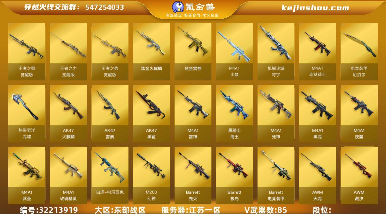 XH9700/东部/江苏一区/【传奇5】/Lv.100 高阶大元帅/VIP6/85V/幻神/星神/白虎/朱雀/白虎电玩蓝兔/电竞装甲套/柯尔特电竞装甲/6烈龙/斯泰尔蝴蝶/3盘龙/2炼狱/3沙鹰天神/五套电竞装甲雷/【音效卡】/雷神音效卡/火麒麟音效卡/毁灭音效卡/极光音效卡/【枪皮】/火麒麟AG/火麒麟战神关羽/火麒麟轻羽/雷神星空/【四防角色】/灵狐者职业经理/【角色】/葵/王者零传说之路/奇洋探员/【小人枪】/火麒麟灵狐/COP旗袍/COP白鲨/【道具】/永久烟雾头/护目镜/超级背包/各种戒指/各种光效/各种玩偶/永久AC/永久雷包/细节看图/【此账号未被封过十年】