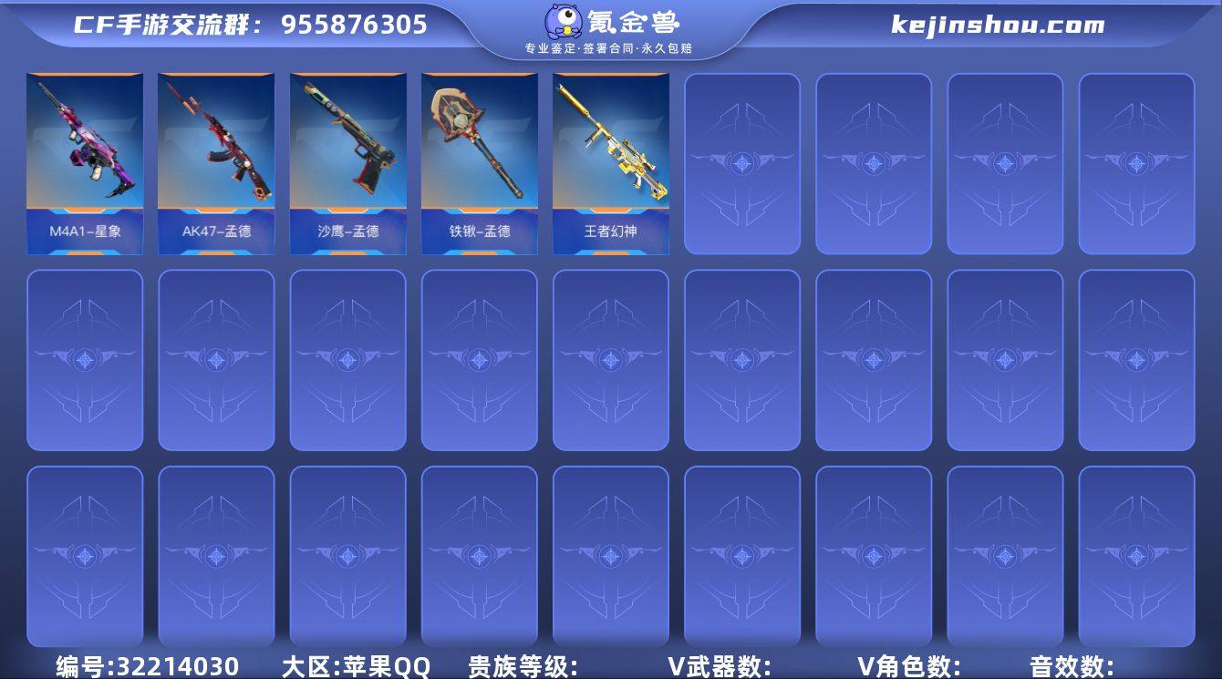 RK6521/苹果QQ/可转区/QQ钱包已注销/苹果q/贵族8/可转区/194V/40角色/345万化/15王者/王者幻神/冰霜奇迹/3至尊/1同框/心至尊/燃竞之巅/怒至尊/魄至尊/拉丝皮/孟德套/星象/四神兽/王者之影套/拉丝皮/王者之兽/王者之烈/王者之击/仁德/威侯/本初/81式光明之神三足金乌/【角色】/关小雨/云悠悠/炽天使X/【套装】/火麒麟套/黑武士套/毁灭套/无影套/御龙套/黑龙套/天使套/竞界荣光套/波塞冬套/火力竞放套/血月套/堕天神套/