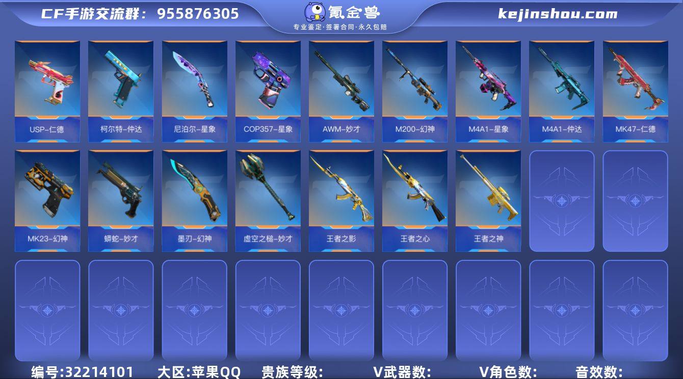 !特价处理-苹果qq-不可转区-可二次-贵8-232V不重复-19王者武器-角 色44-万化549-收藏点5097-COP4个-【2至尊1同框】-心至尊-魄至尊-星象套-四神兽-妙才套-过载-仲达套-白露-过载-音效卡-仁德套-幻神套-音效卡-!巴雷特定军-王者之魄-王者之心-燃竞之巅-王者之影-王者之神-王者之魂-白金血钻-王者之迹-冰霜奇迹-王者之电-王者之隐-王者之圣手雷-王者之兽手雷-王者之影闪光弹-王者之翼闪光弹*2-王者之翼烟雾弹-王者之势烟雾弹-81式机械纪元-81式阿波罗-星神-音效卡-MK47云-COP星象-COP绚樱-COP飞龙在天-【角色】-春-审判者-葵-零新生-瞳-关小雨-【套装】-火麒麟套-黑武士套-黑骑士套-毁灭套-无影套-死神套-刀王武器套-御龙套-黄金武器套-天使套-竞技战魂套-机械纪元套-冰锋套-火力竞放套-机械迷城套-