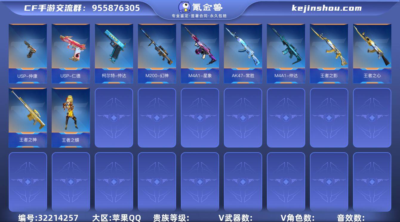 ABC6573/苹果q/钱包注销/可转区/贵7/287v/角色47/万化497/王者武器23/仲达套/M4仲达+音效卡/M4星象+音效卡/AK常胜/盖/策/王者之心/王者之影/王者之蝶/王者之神/王者之尊/王者之誉/M12S雷霆王者/王者之霆/幻神+音效卡/仲康/孟获/柯尔特仲达/USP仁德/USP仲康/王者之魂/黄金cop/cop冰川守护/幻神刀/关小雨/炽天使X/零水下丽影/瞳/零新生/仲康套/火麒麟套/黑武士套/毁灭套/无影套/冰锋套/机械迷城套/双脊龙套/血月套/诗仙套/炎龙侠套/孟获套/