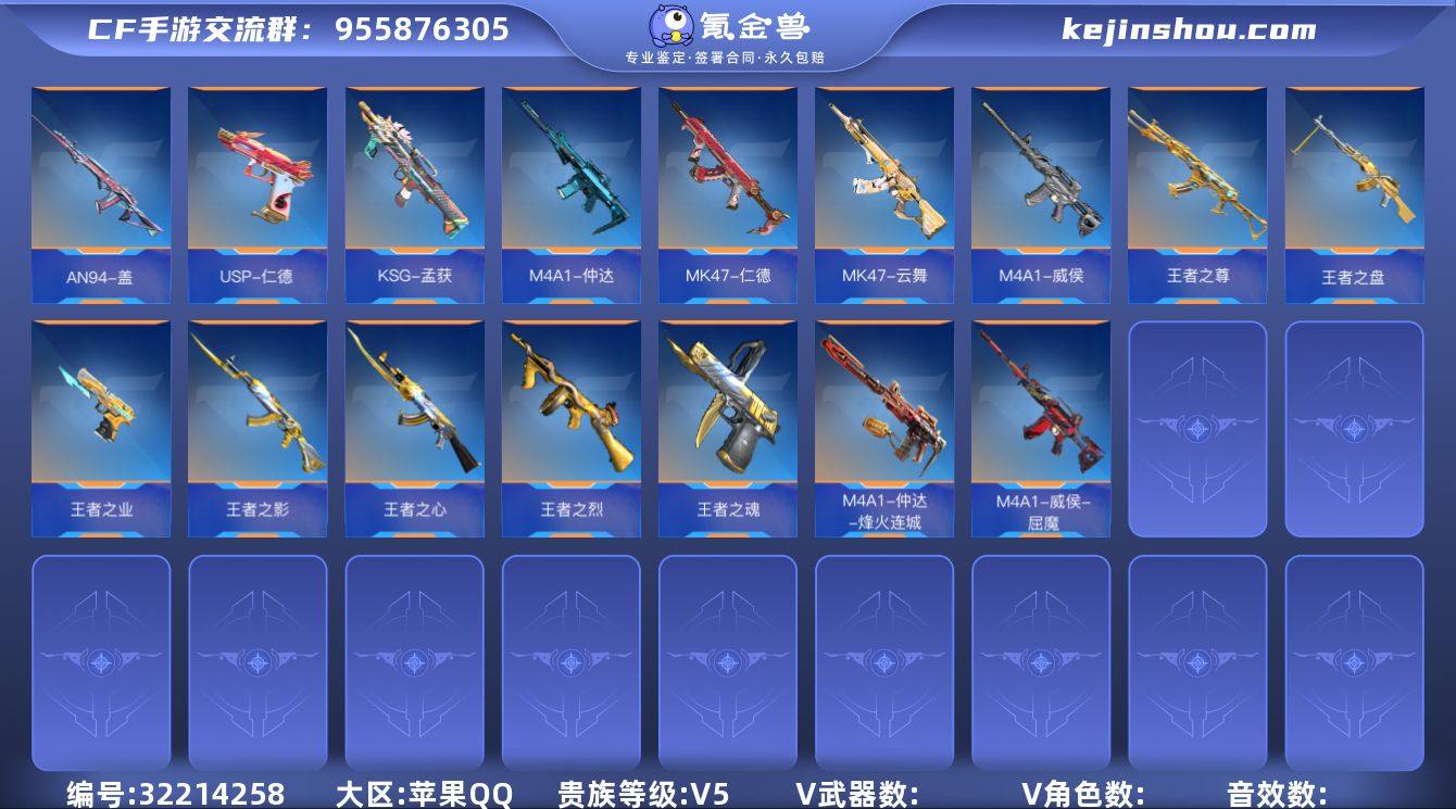 ABC11192/苹果QQ/贵5/暂不可转区/钱包已注销/可二次/不重复v224/10王者武器/仁德套/仲达/烽火连城/威侯/屈魔/AN94盖/孟获/王者之影/王者之心/王者之尊/王者之盘/王者之烈/云舞/鼓龙套/白昼/王者之魂/王者之业/【角色】/蔡文昭/零水下丽影/关小雨/零新生/炽天使X/瞳/步练师/黑武士套/毁灭套/冰锋套/幻神套/机械迷城套/血月套/诗仙套/卧龙套