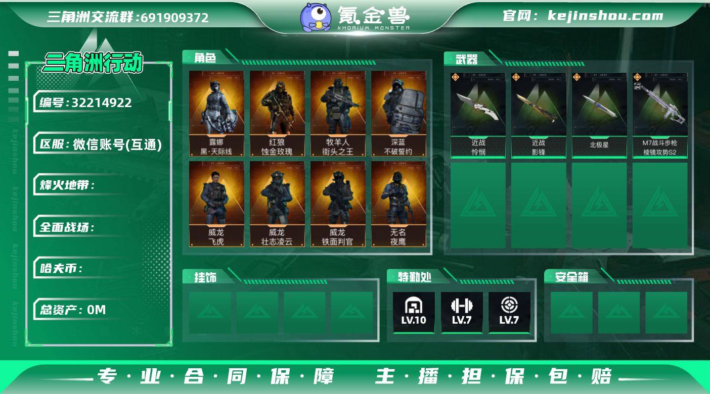 Rs9393/微信/总资产148M/【红狼-蚀金玫瑰/威龙-飞虎/威龙-铁面判官/威龙-壮志凌云/无名-夜鹰/蜂医-送葬人/牧羊人-街头之王/深蓝-不破誓约/露娜-黑天际线/】【刀皮:怜悯/影锋/北极星】/M7战斗步枪-棱镜攻势S2(优品C)/战斗部门Lv4/医疗部门Lv4/战术部门Lv4/后勤部门Lv4/研发部门Lv4/仓库10级/指挥中心6级/训练中心7级/靶场7级/潜水中心1级/收藏室1级/M7战斗步枪-怜悯/M7战斗步枪-维京/M7战斗步枪-神秘艺术/M7战斗步枪-白玫瑰/AWM狙击步枪-捞点薯条/AWM狙击步枪-影锋/